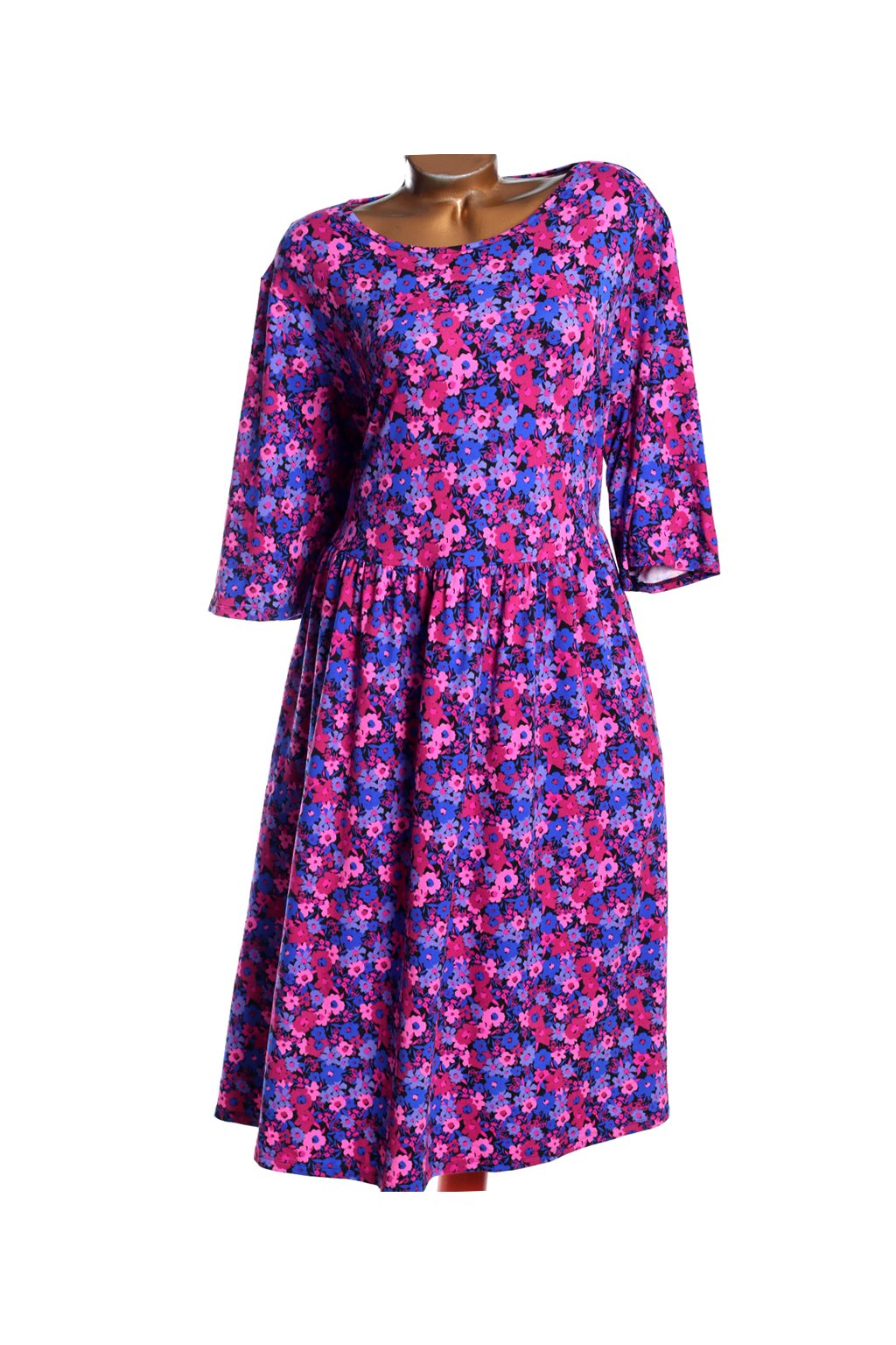 Dámské černé šaty s modro-fialovo-růžovými květy / Simply Be / XXXXL+ (56) / UK 28 / ANGLIE