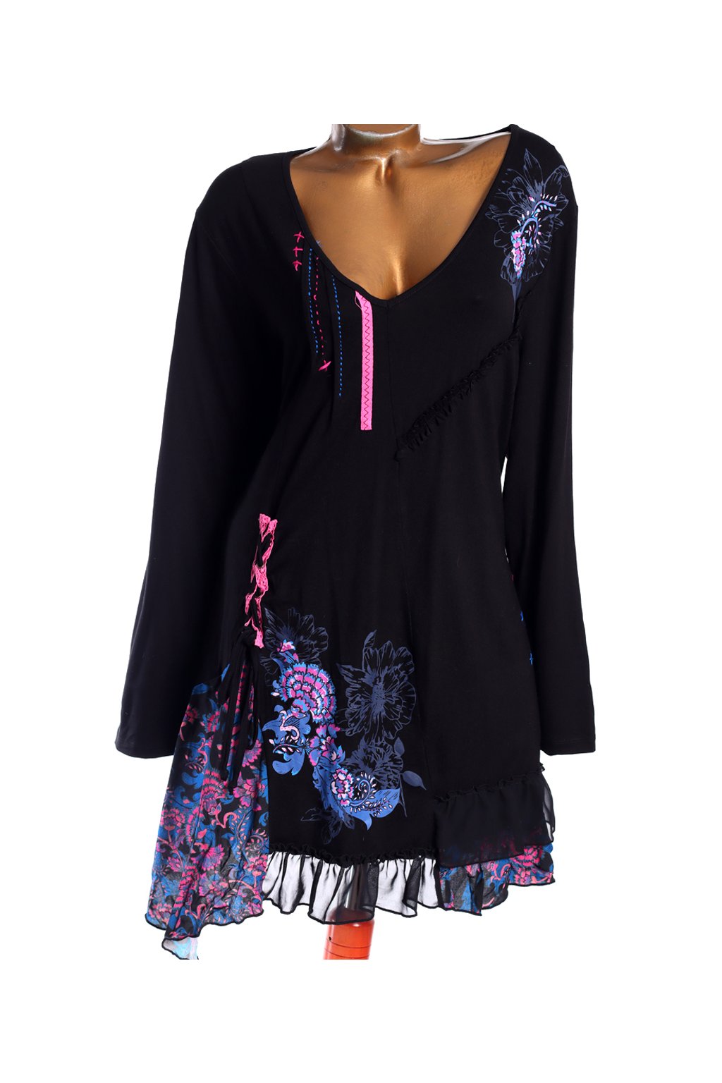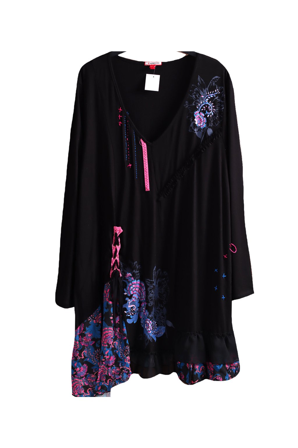 Dámské černé šaty s modro-růžovo-šedými květy / JOE BROWNS / XXXXL (52) / UK 24 / ANGLIE