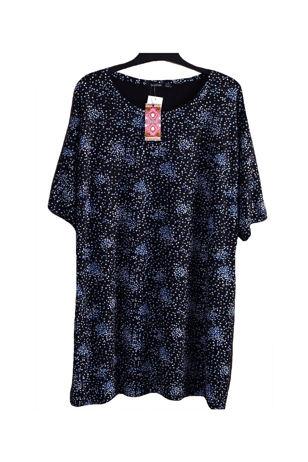 Dámské černé šaty s modrrými květy / BOOHOO / XXXL (52) / UK 24 / ANGLIE