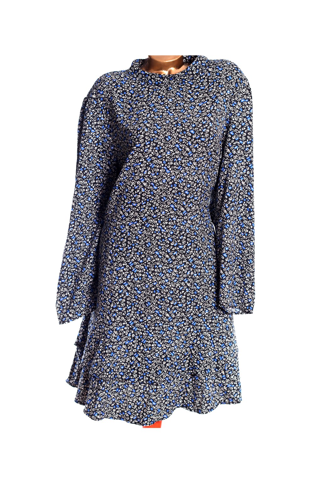Dámské černé šaty s modrými a bílými květy / TALL / XXXL (50) / UK 22 / ANGLIE