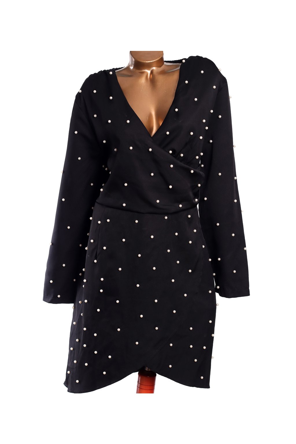 Dámské zimní černé šaty s perličkami na přední části/ BOOHOO / XXXL (50) / UK 22 / ANGLIE