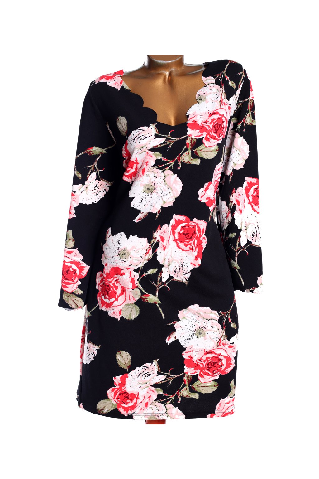 Dámské černé šaty s růžemi / XXXL (50) / UK 22 / ANGLIE