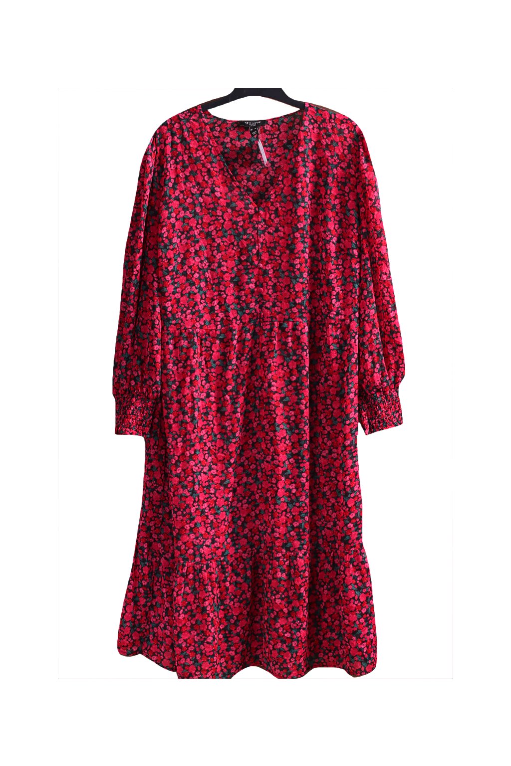 Dámské černé šaty s růžovo-červenými květy / NEW LOOK / XXXL (50) / UK 22 / ANGLIE
