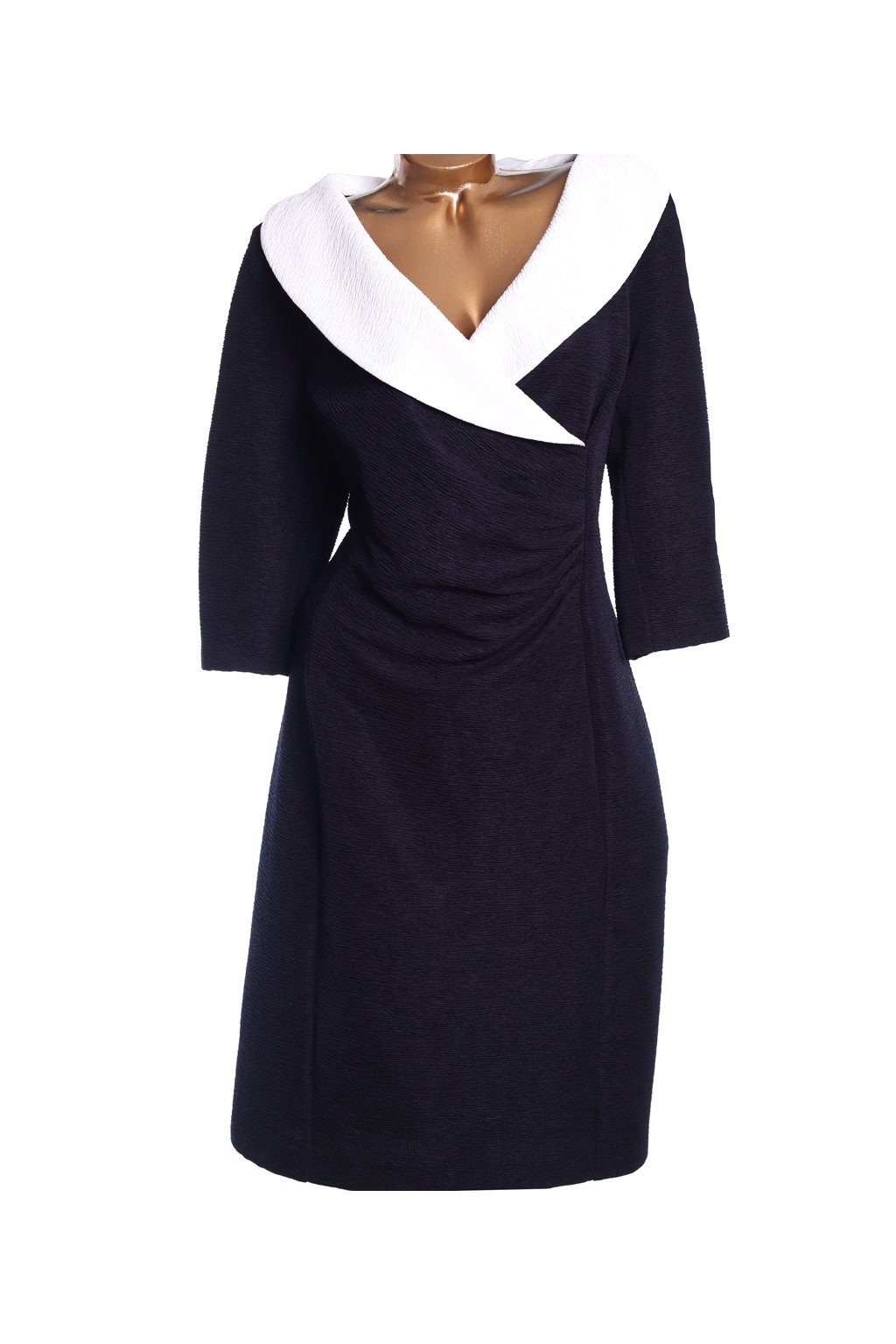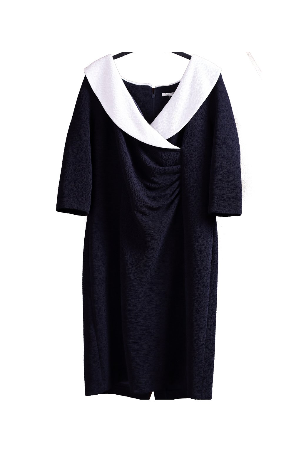 Dámské černo/modré kvalitní šaty s textuturou a bílým límcem / PERSONAL CHOICE / XXL (48) / UK 20 / ANGLIE