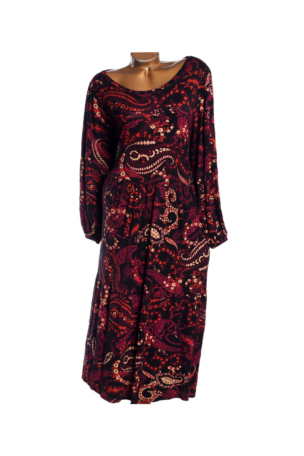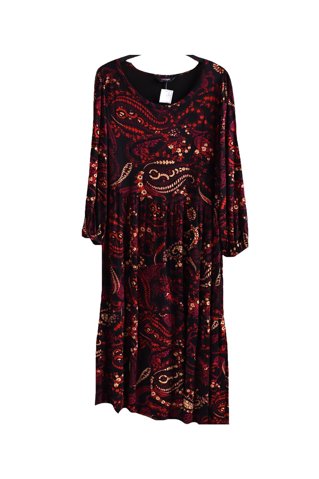 Dámské černé šaty se vínovo-červeno-béžovými vzory / YOURS/ XXXL (50/52) / UK 22/24 / ANGLIE