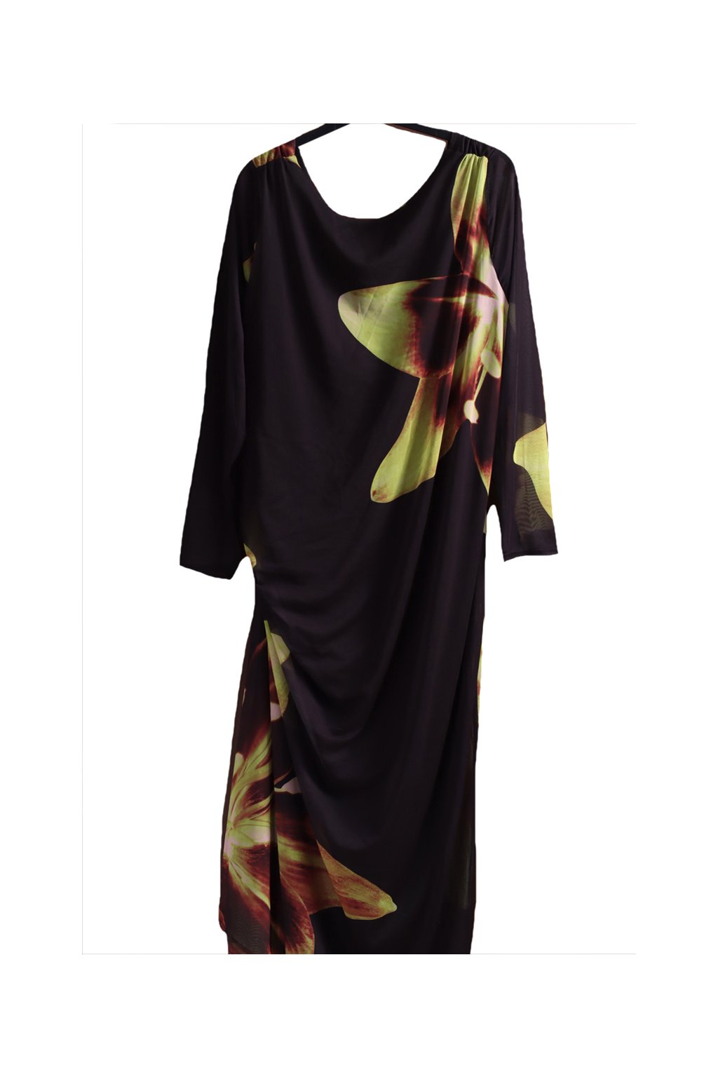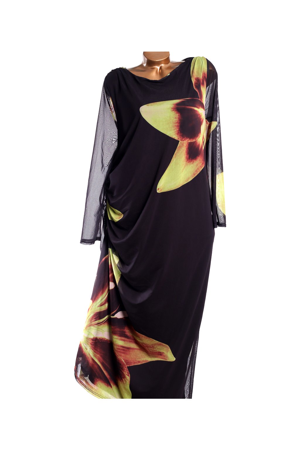 Dámské černé šaty se zeleno-hnědo-béžovými květy / BOOHOO / XXXXL (54) / UK 26 / ANGLIE
