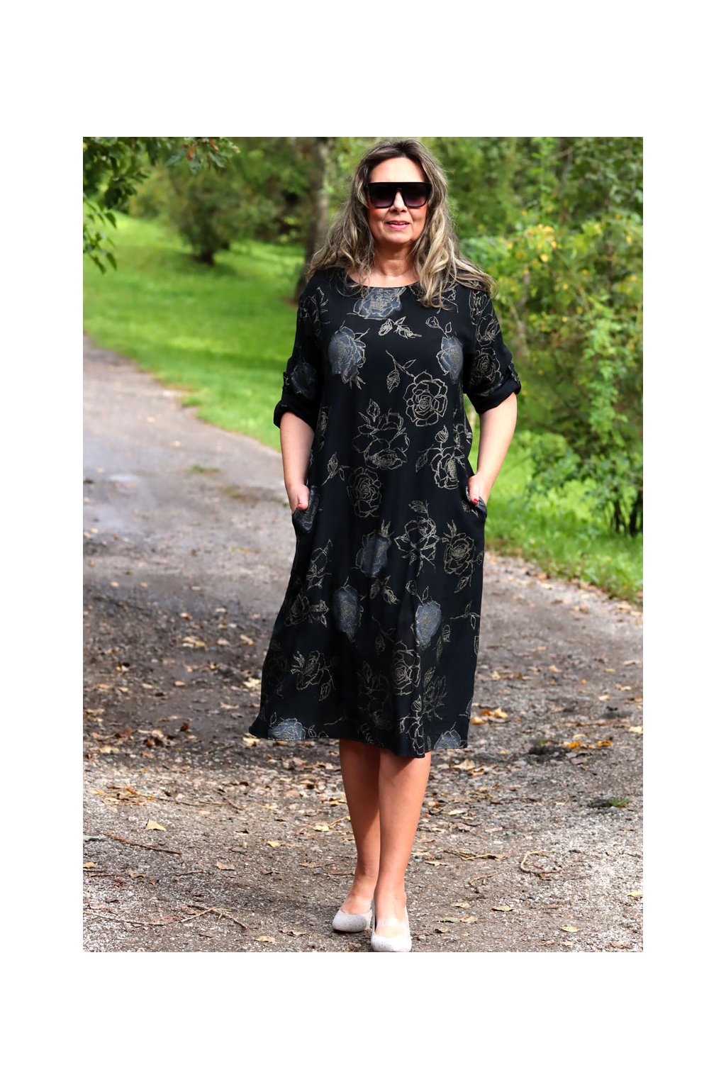 Dámské černé šaty se zlatýmí růžemi / MADE IN ITALY / XL-XXL (42/44/46) prsa do 118 cm / MODA ITALY