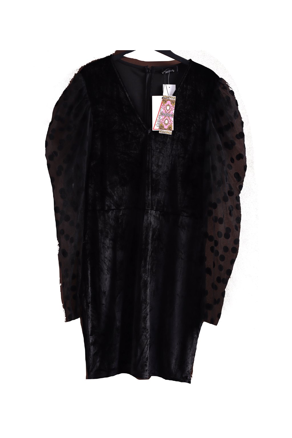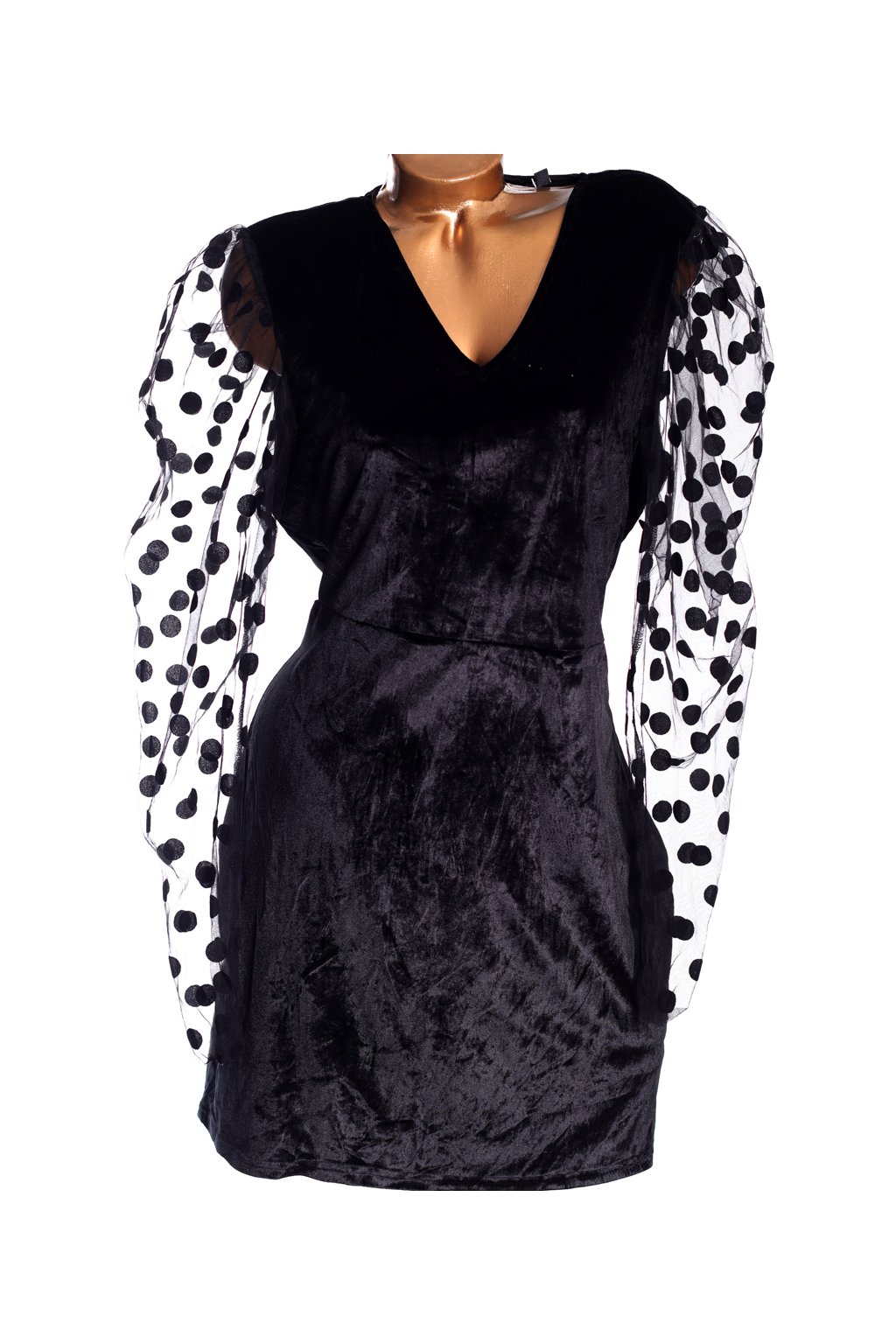 Dámské černé semišové šaty s puntíky na rukávech / BOOHOO / XXL (46) // UK 18 / ANGLIE