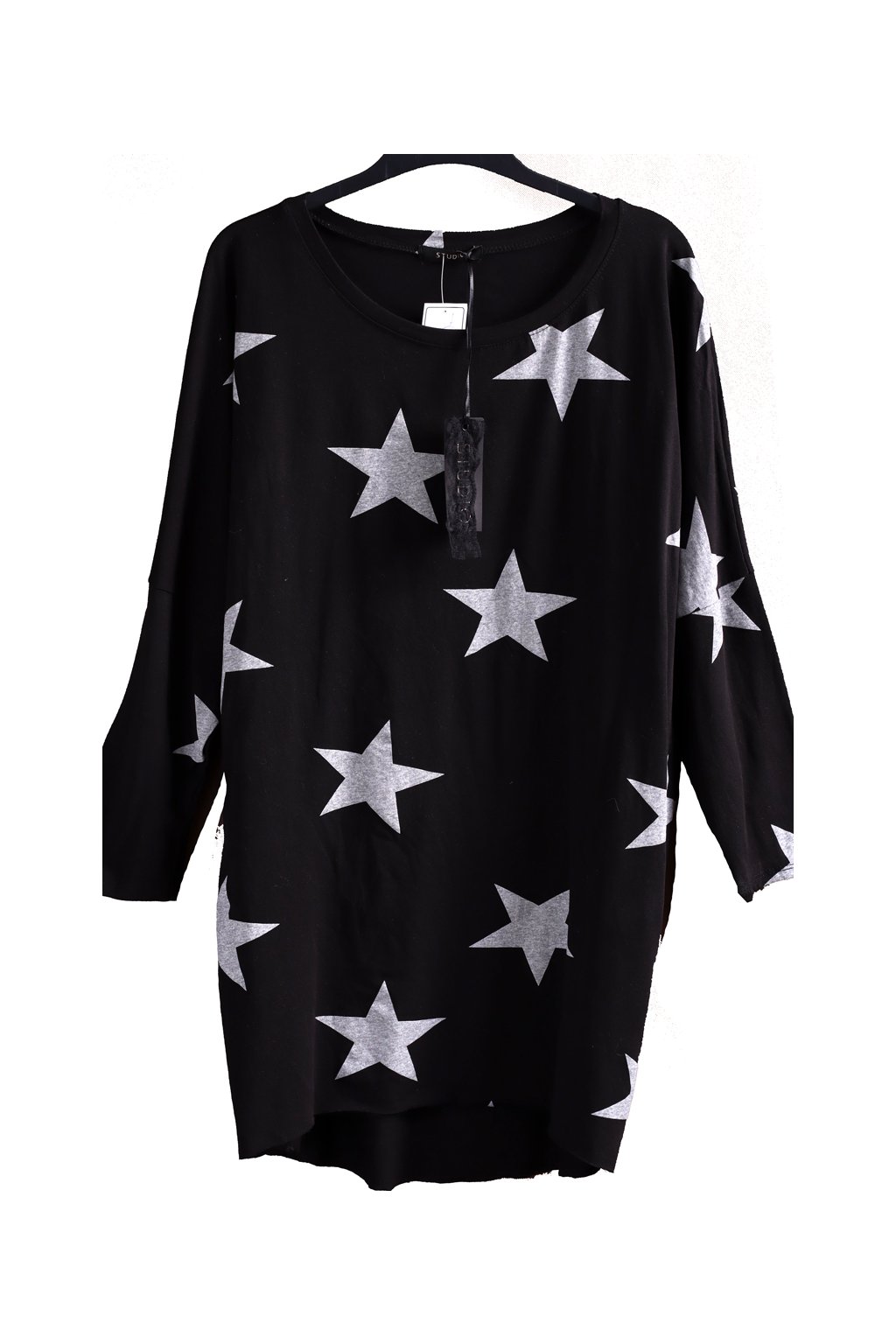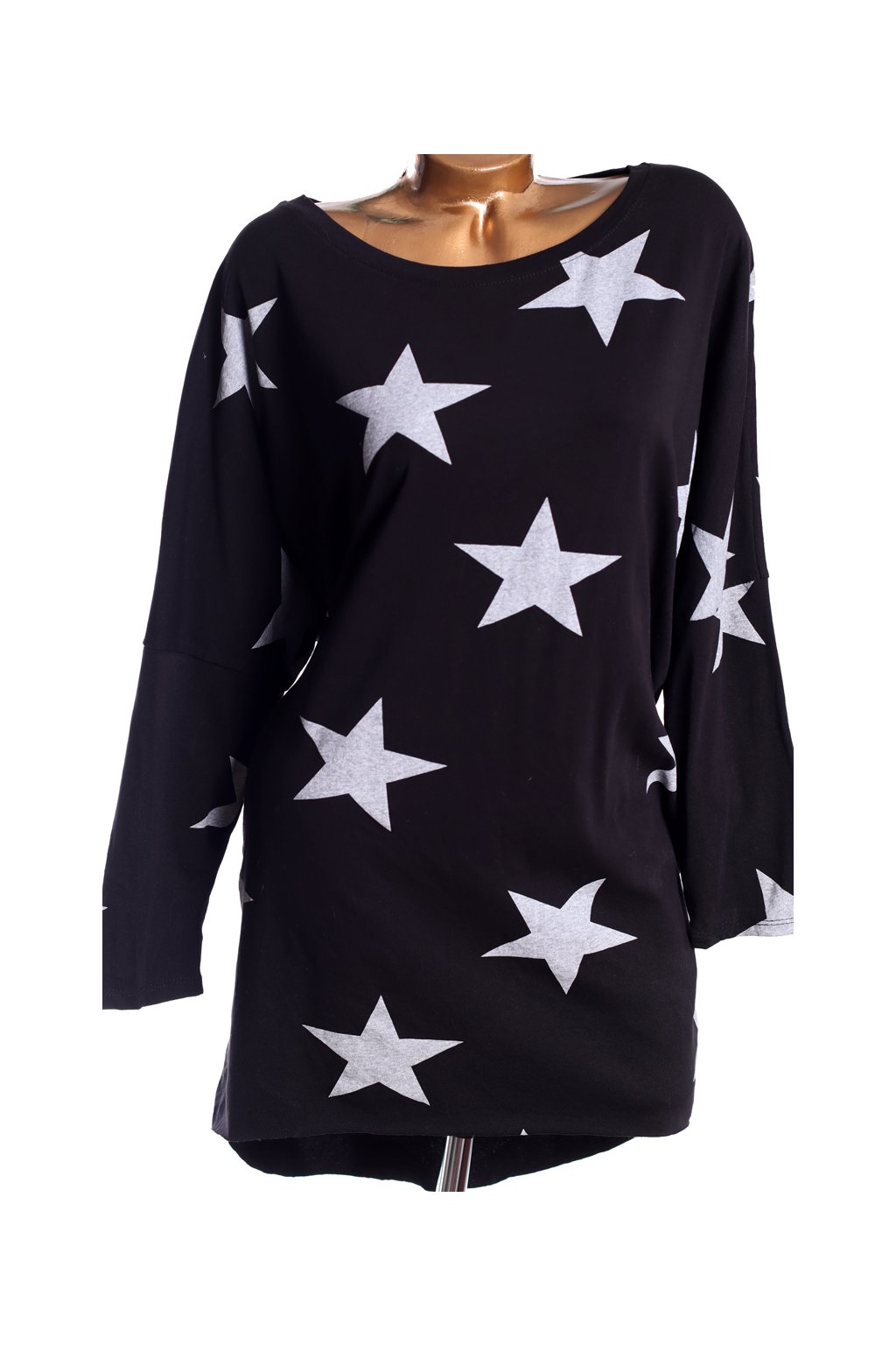 Dámské černé triko s šedými hvězdami/ STUDIO / XXXL (50/52) / UK 22/24 / ANGLIE