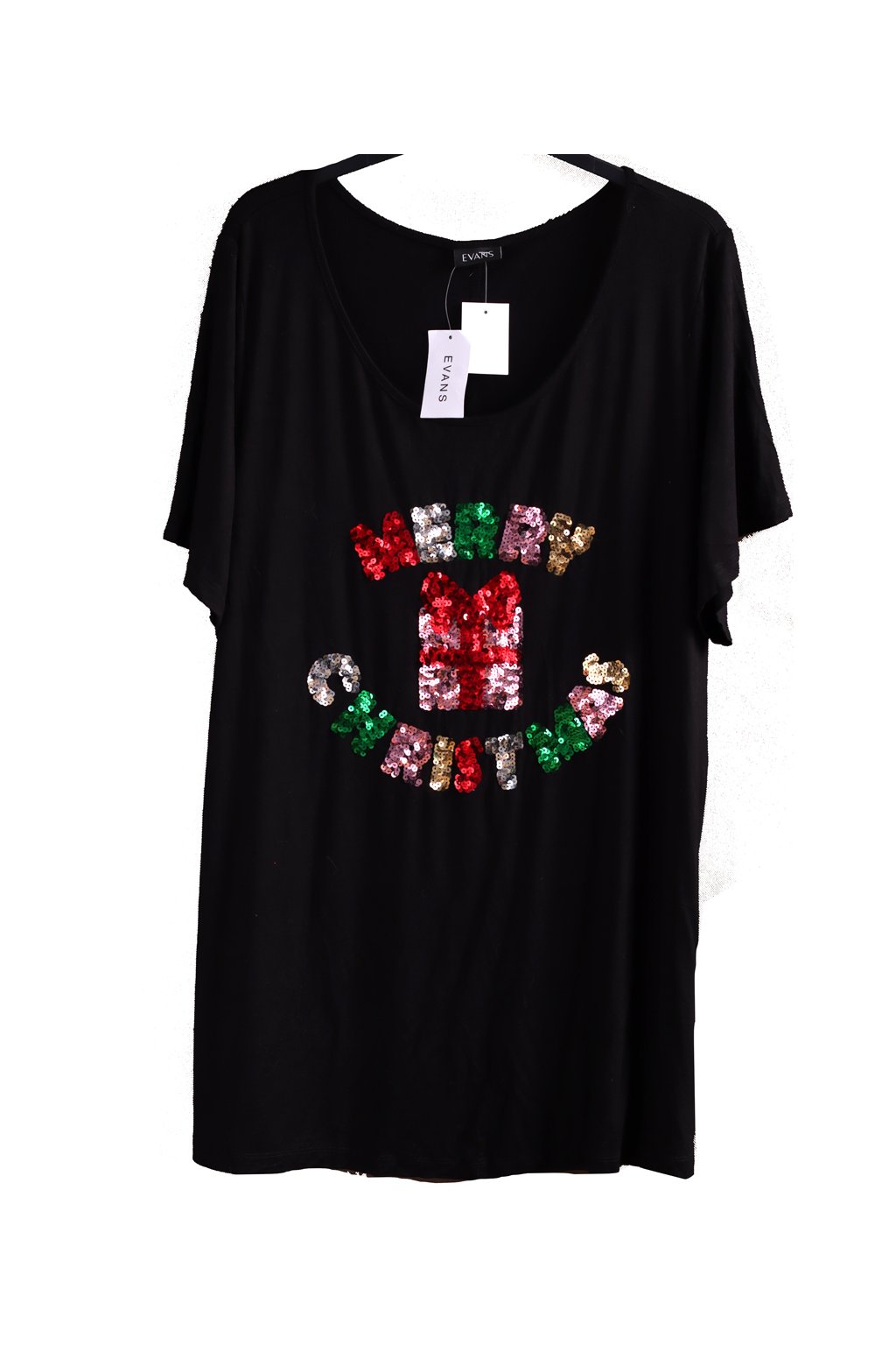 Dámské černé triko s vánočním flitrovým vzorem / EVANS / XXXL 50/52 / UK 22/24 / ANGLIE