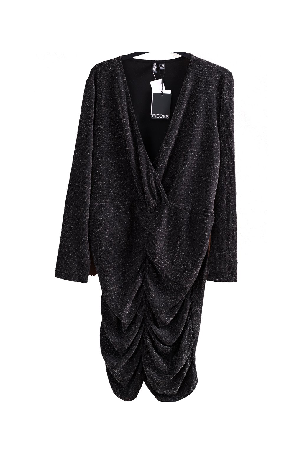 Dámské černé třpytivé šaty / PIECES / XXXXL (52-54) / UK 24-26 / ANGLIE
