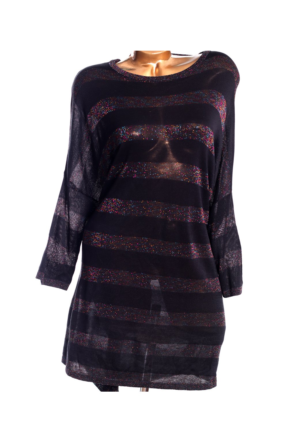 Dámské černé úpletové šaty s barevnými třpytivými pruhy / YOURS / XL (44) / UK 16 / ANGLIE
