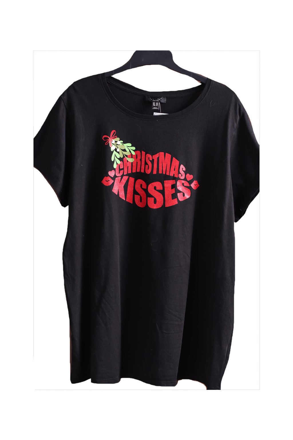 Dámské černé vánoční triko s jmelím a pusinkou / NEW LOOK / XXXL (50) / UK 22 / ANGLIE