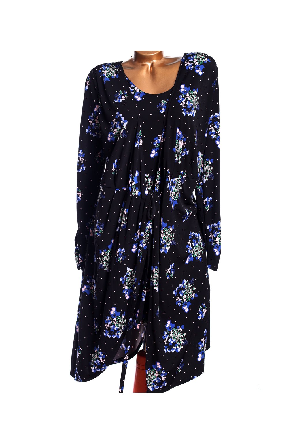 Dámské černé zavinovací šaty s modrými květy a růžovými puntíky / / XXL (44) / UK 16 ANGLIE