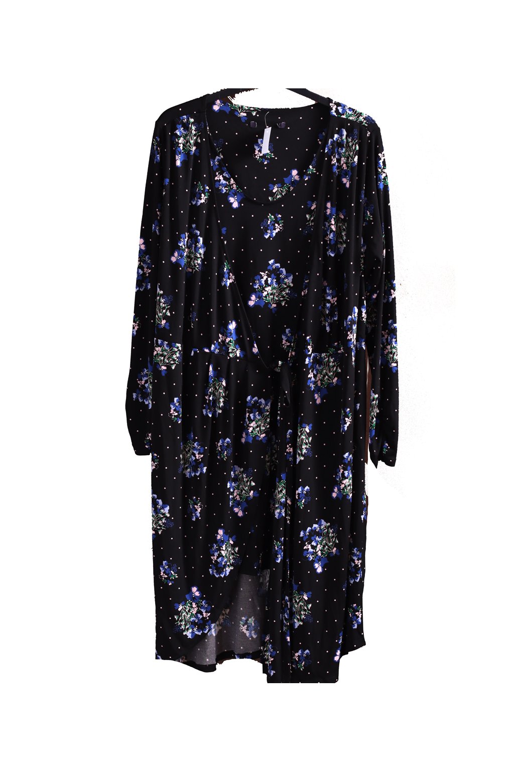 Dámské černé zavinovací šaty s modrými květy a růžovými puntíky / / XXL (44/46) / UK 16 ANGLIE
