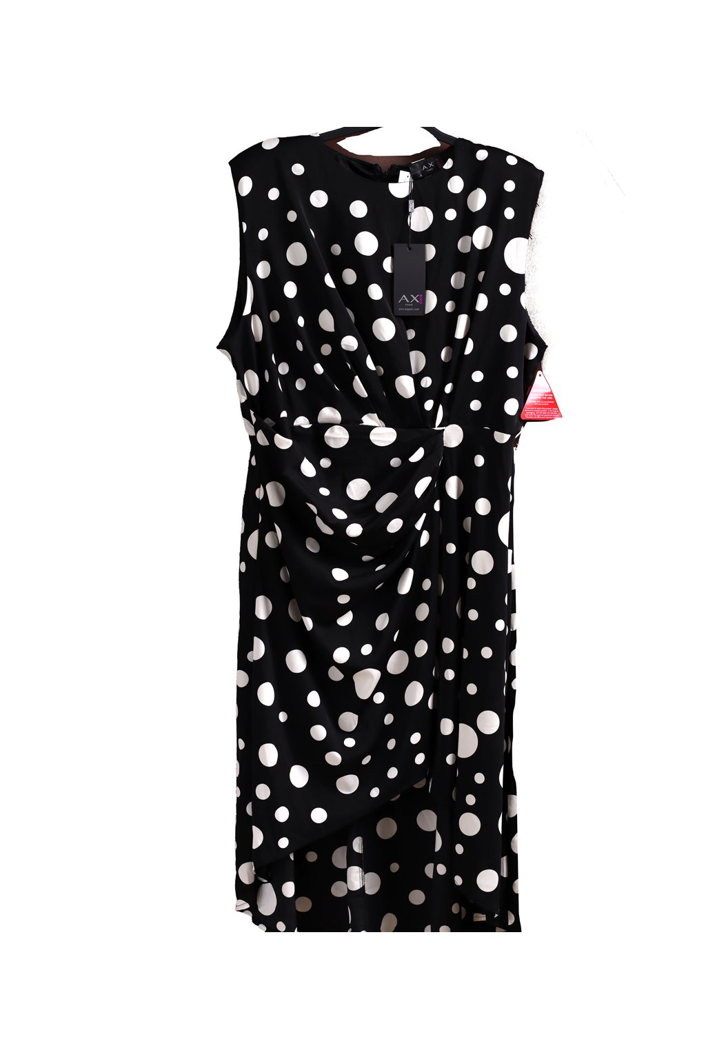 Dámské černé značkové elastické šaty s bílými puntíky / AX PARIS/ XXXL (50/52) / UK 24 / ANGLIE