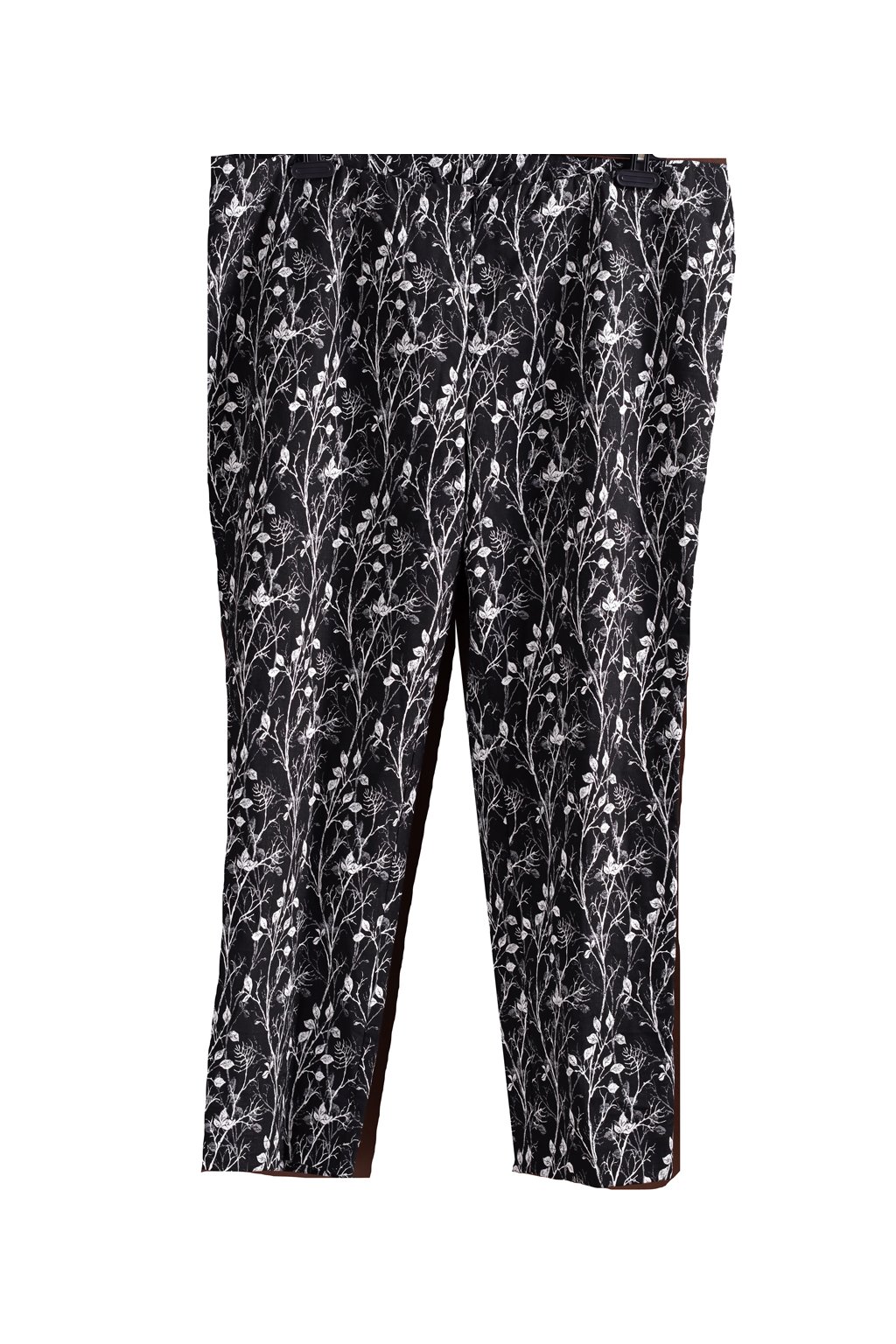 Dámské černo-bílé kalhoty se vzorem listů / SELECTION / XXXXL (52) / UK 24 / ANGLIE