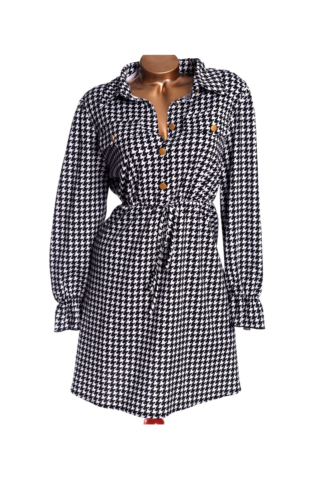 Dámské černo-bílé kostkované kabátkové šaty / XXXL (48/50) / UK 20/22 / ANGLIE