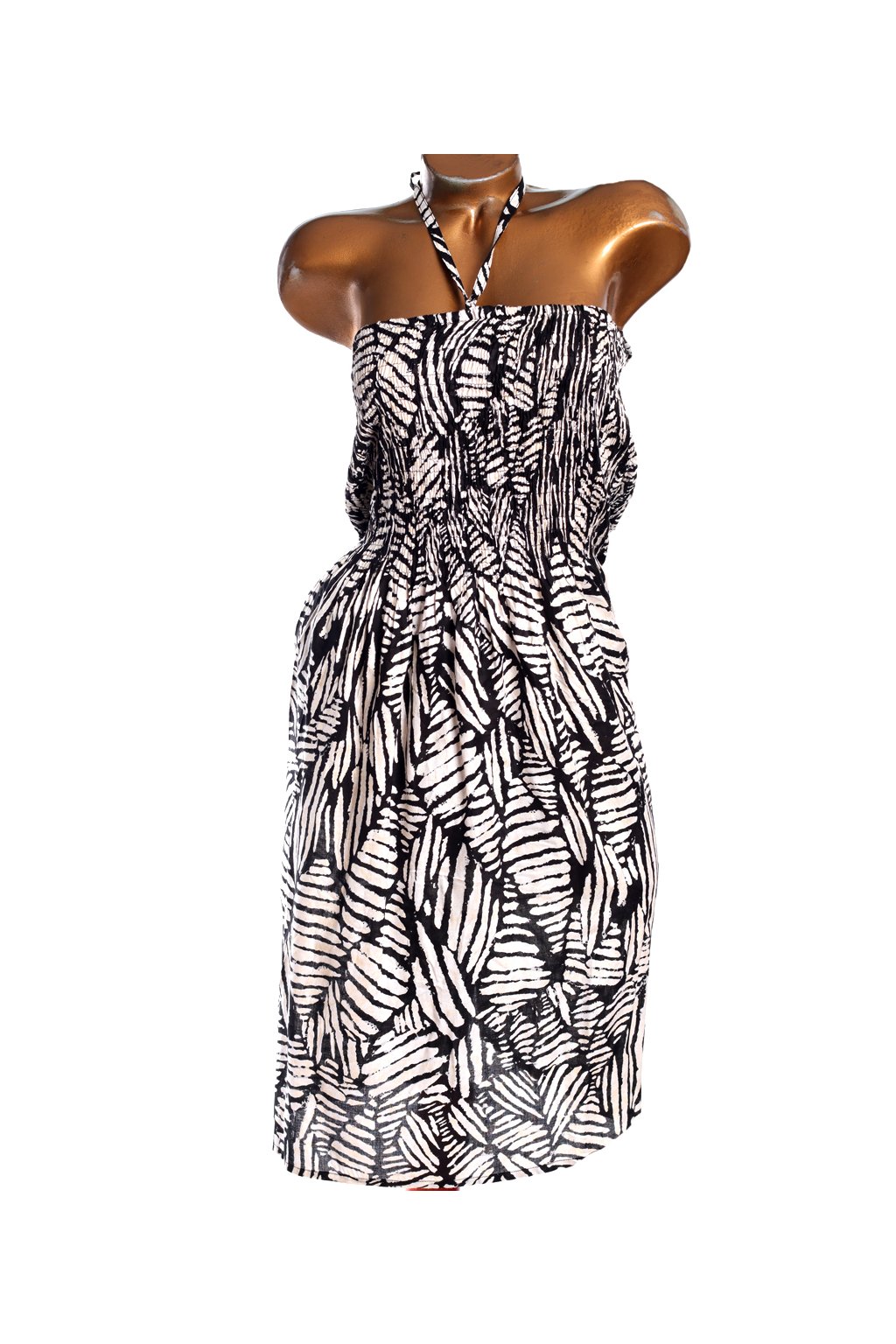 Dámské černo-bílé vzorované šaty se žabičkováním / PISTACHIO / - XXL (42/44/46) / UK 14/16/18 / / ANGLIE