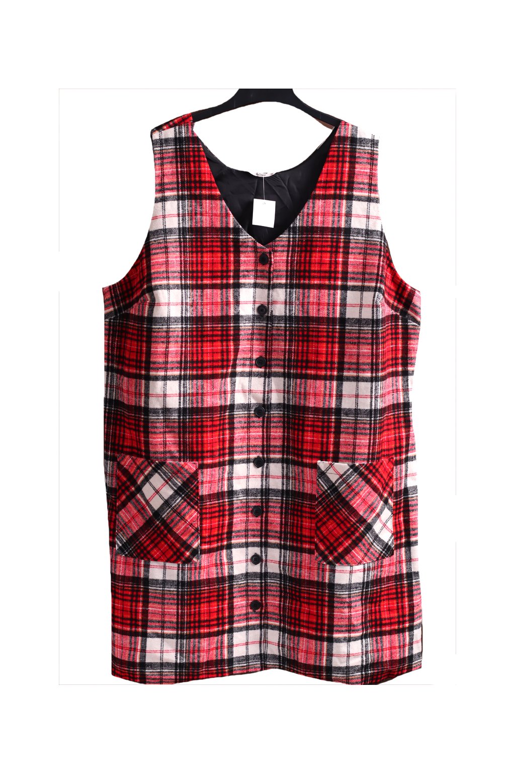 Dámské černo-bílo-červené kostkované zimní šaty - NA ROLÁK, HALENKU / TU / XXXL (50/52++) / UK 22 / ANGLIE