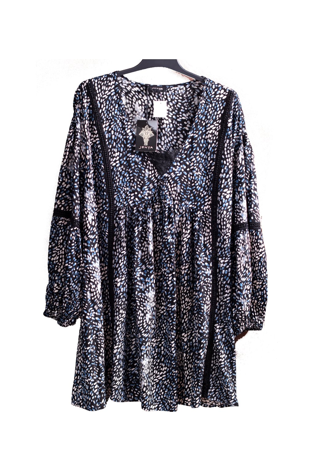 Dámské černo-bílo-modré vzorované šaty / Jenya / XXXL (50) / ANGLIE