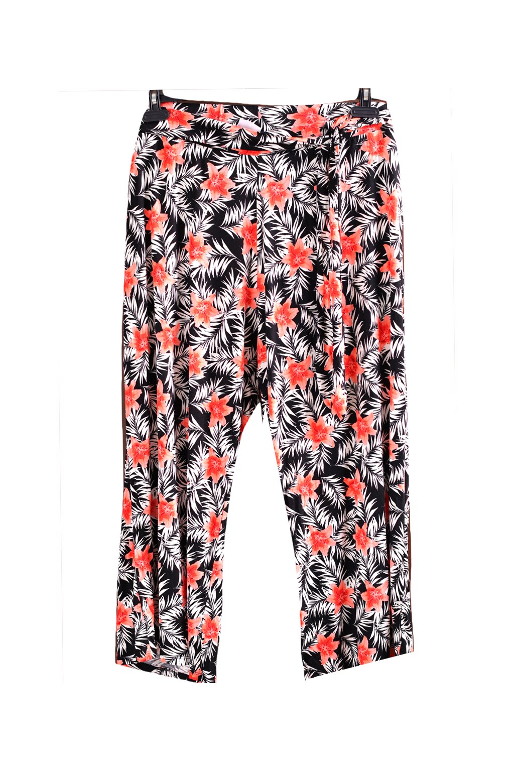 Dámské černo-bílo-růžové elastické květované kalhoty / GEORGE / XXXXL (52) / UK 24 // ANGLIE