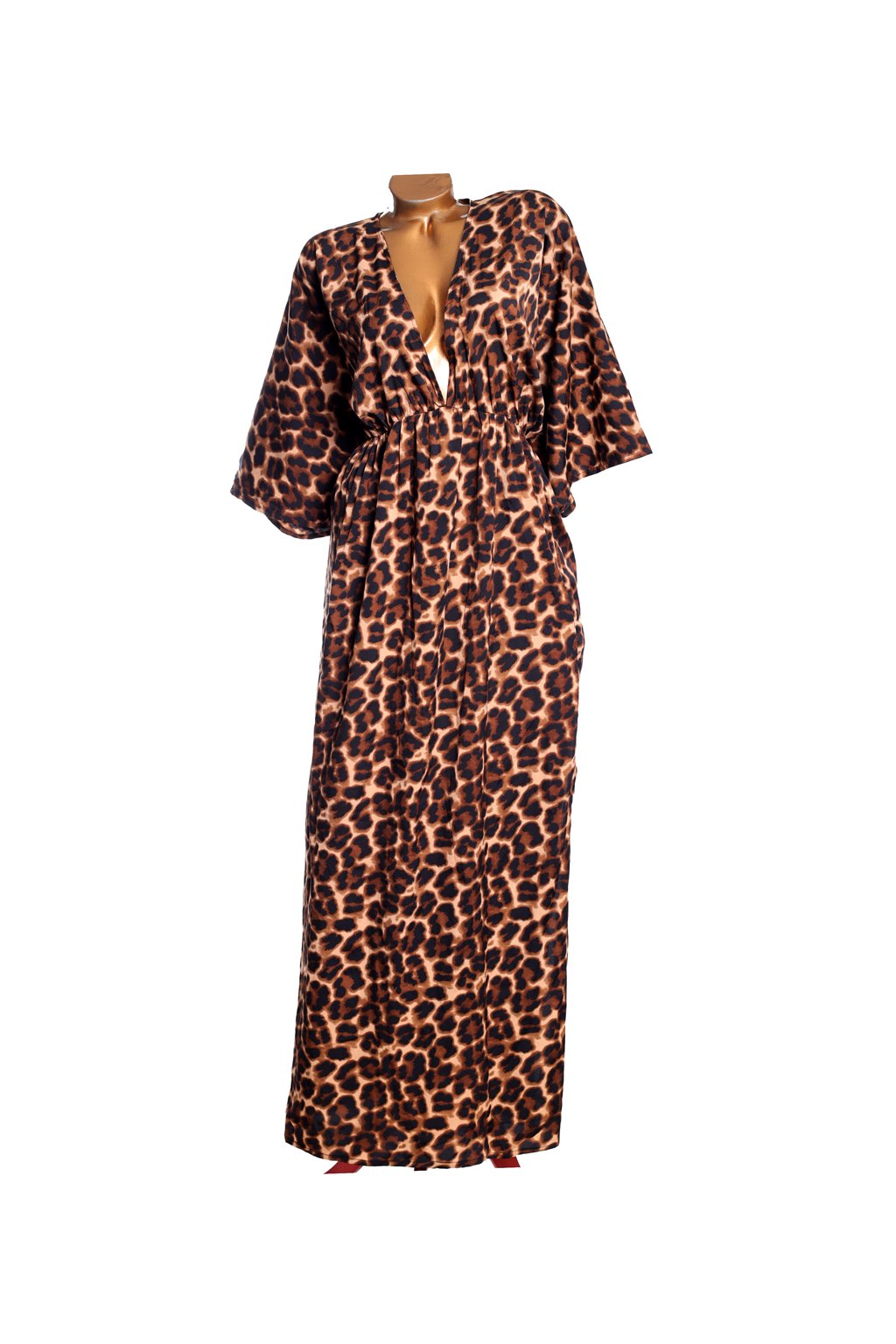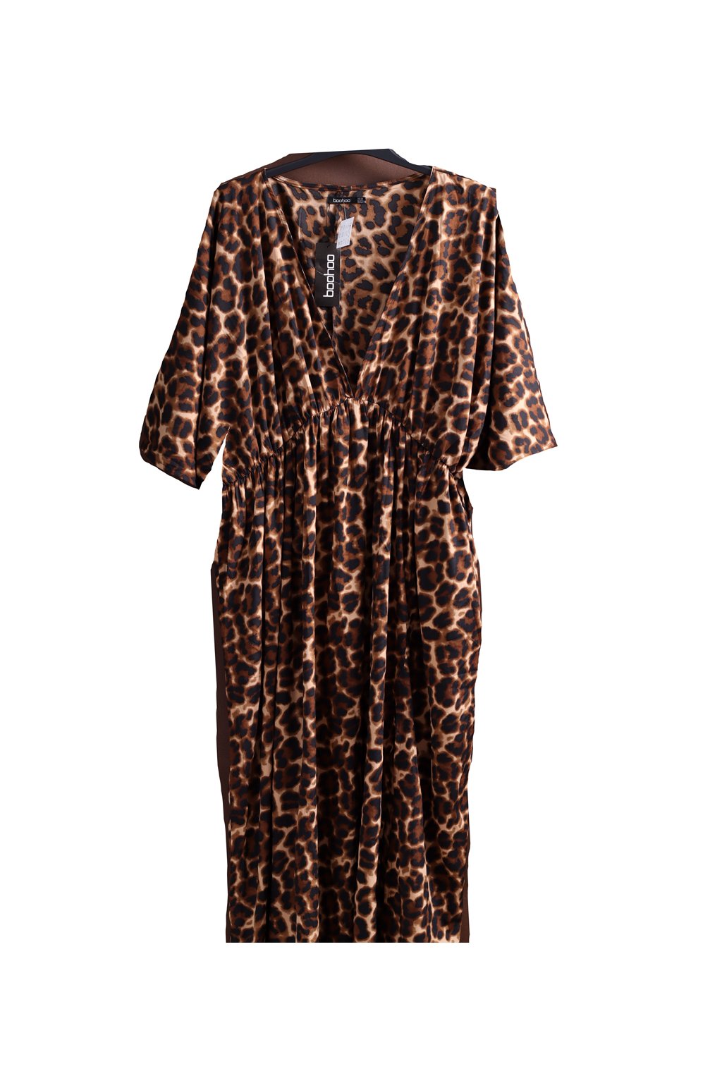 Dámské lehké černo-hnědé leopardí šaty s dlouhým rukávem / BOOHOO / XXXXL+ (56) / UK 28 / ANGLIE