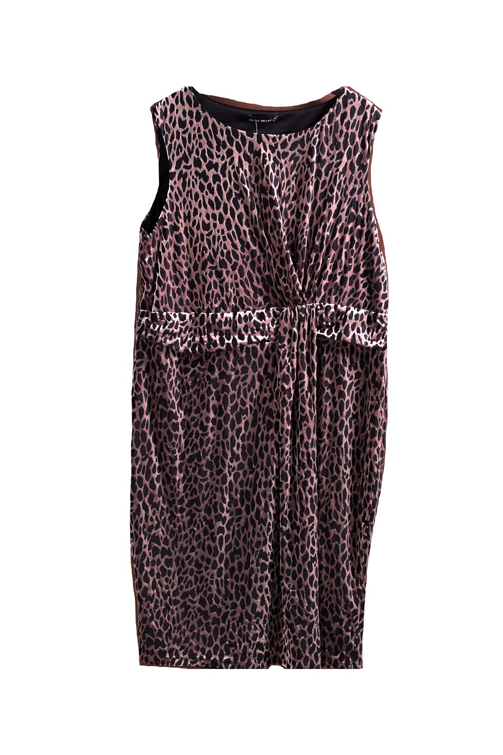 Dámské pod-zimní společenské černo-hnědé semišové šaty s leopardím vzorem / DAVID EMANUEL / XXXXL (52) / UK 24 /ANGLIE