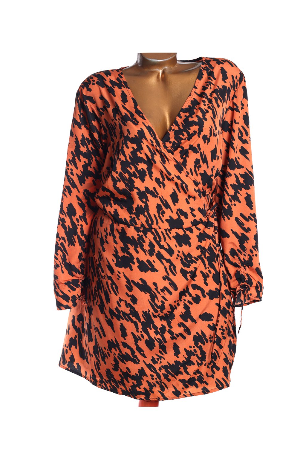 Dámské černo-hnědé vzorované zavinovací šaty / WEDNESDAY GIRL / - XXXXL (52) / UK 24 / ANGLIE