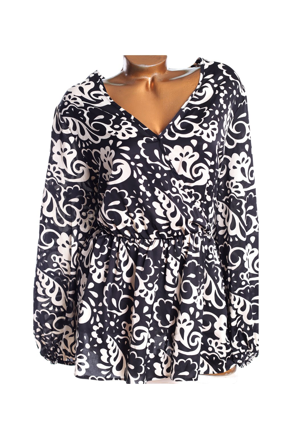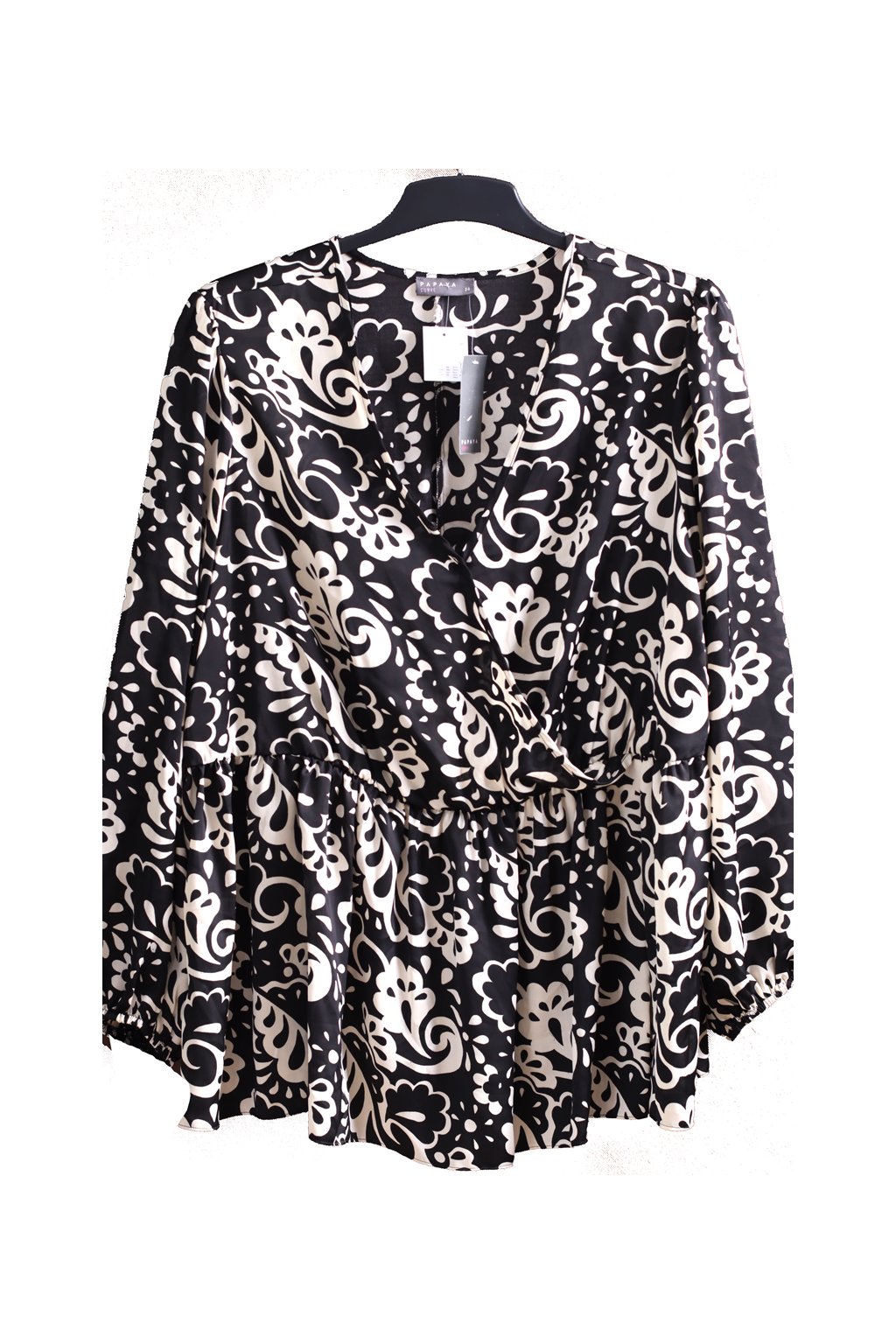 Dámská černo-krémová halenka s exotickým motivem / PAPAYA / XXXXL (52) / UK 24 / ANGLIE