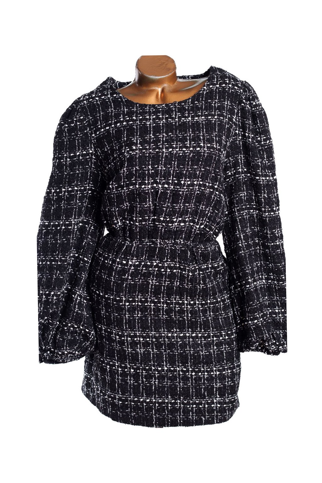 Míry: délka –87cm, prsa-110-114cm, pas -90cm , spodní lem - 112cm, rukáv -62cm