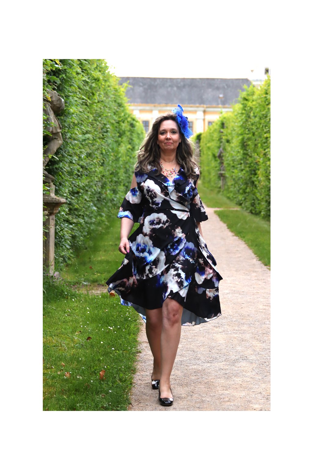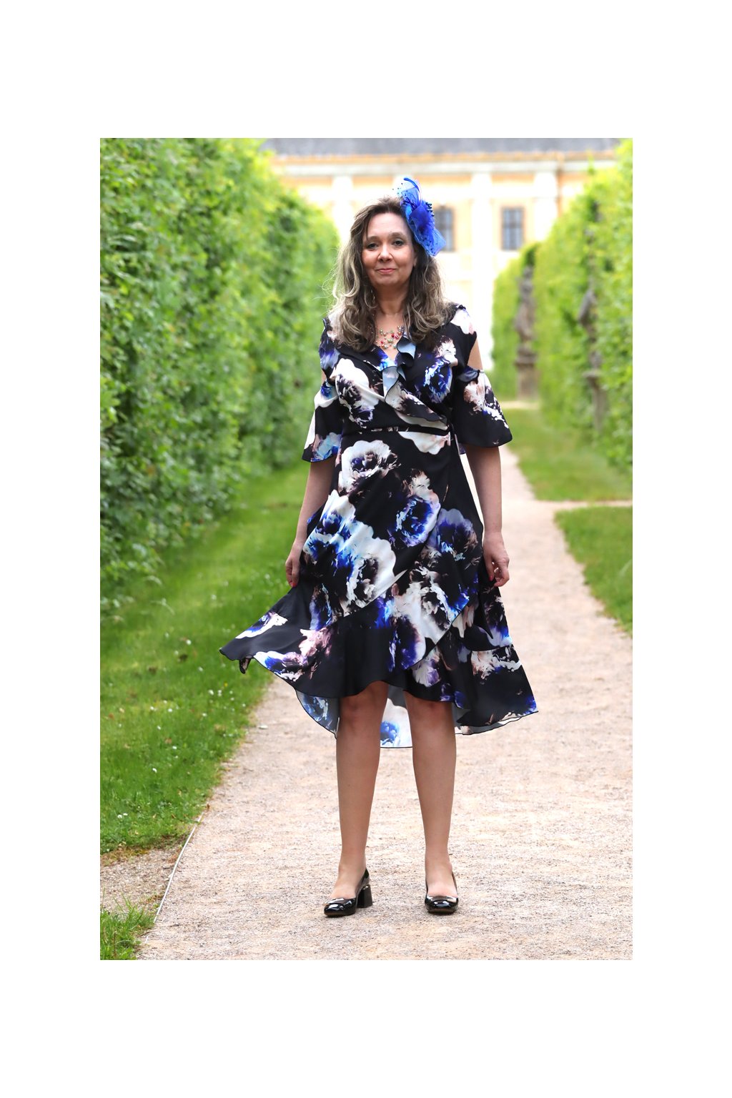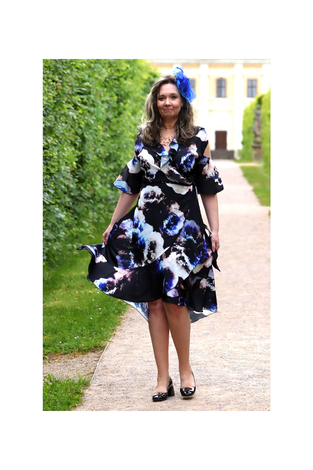 Dámské černo-modro-krémové květované šaty / CURVISSA / XXXXL+ (56) / UK 28 / ANGLIE