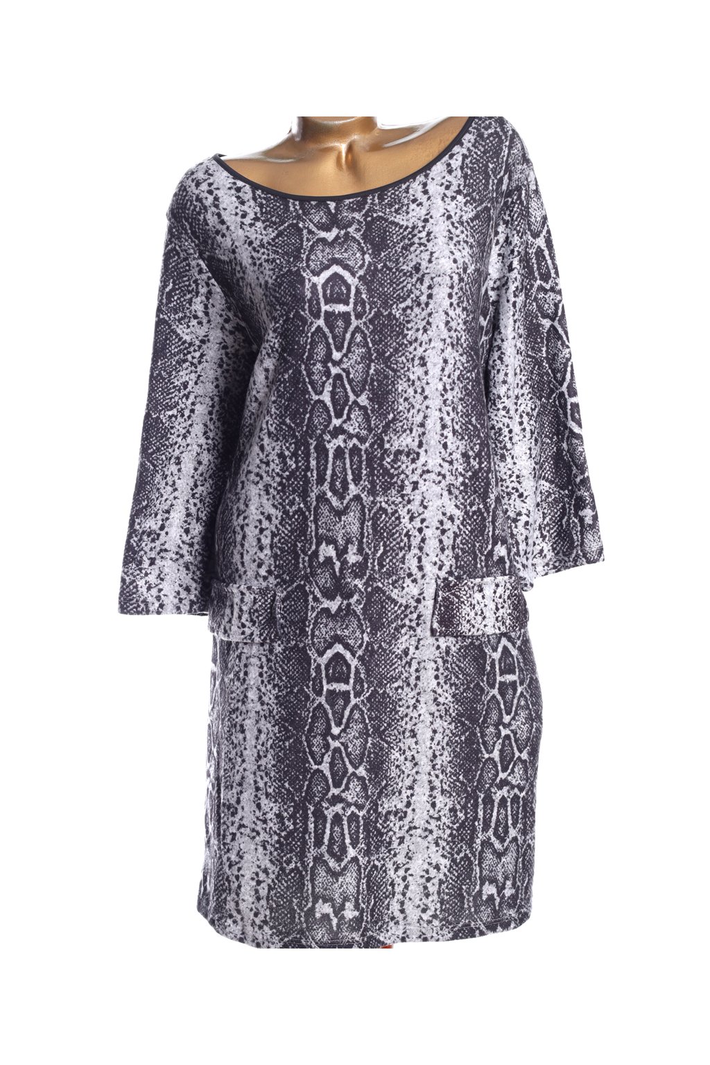 Dámské černo-šedé zimní šaty s hadím vzorem/ YOURS / XXXXL (52) / ANGLIE