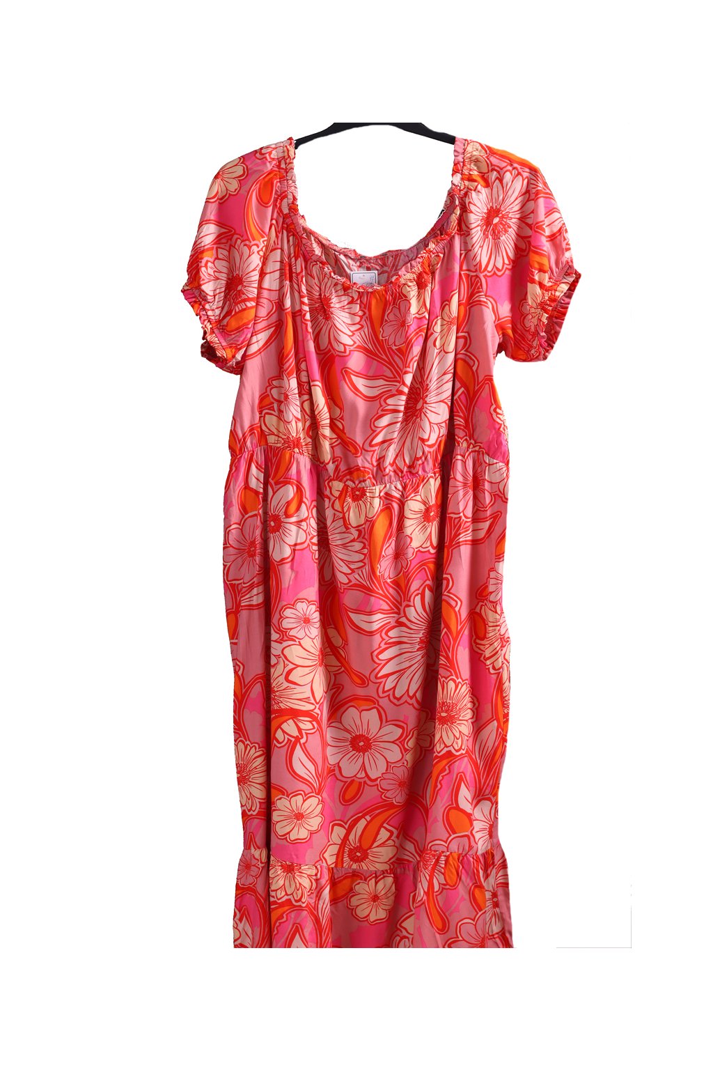 Dámské červené šaty s barevnýi květy / (54) / UK 26 / ANGLIE
