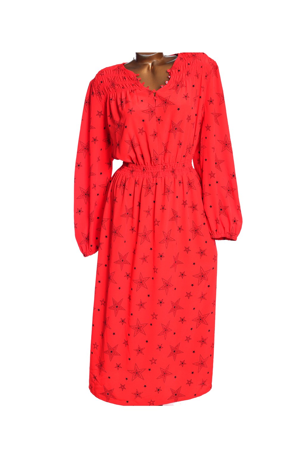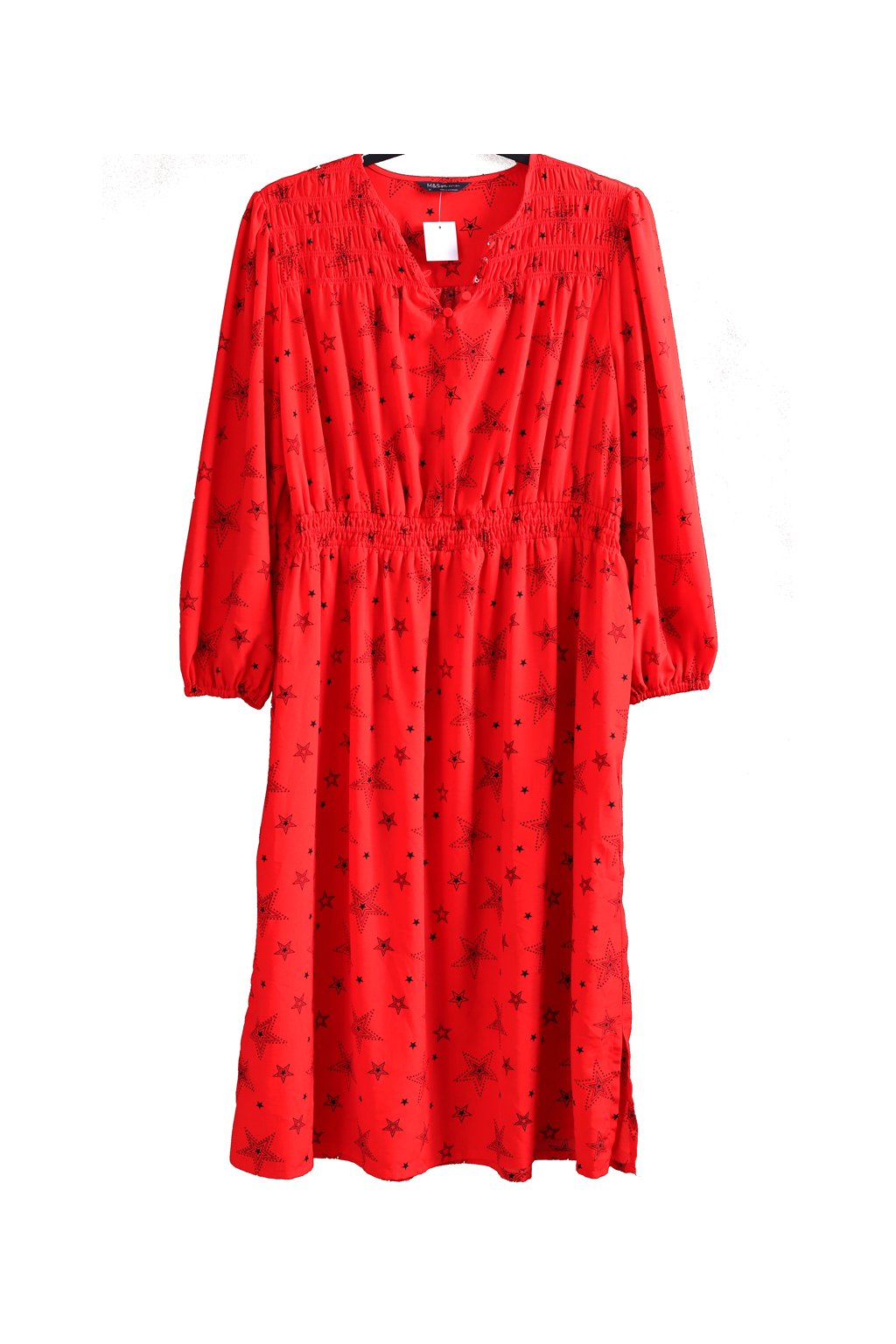 Dámské červené šaty s černými hvězdičkami / Marks & Spencer / XXXXL (50) / UK 22 / ANGLIE