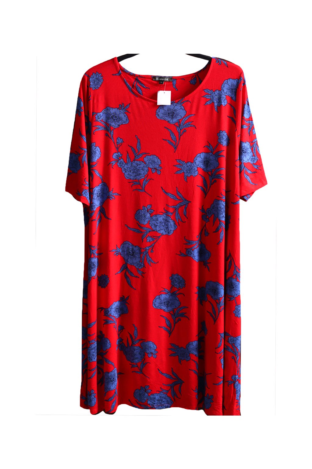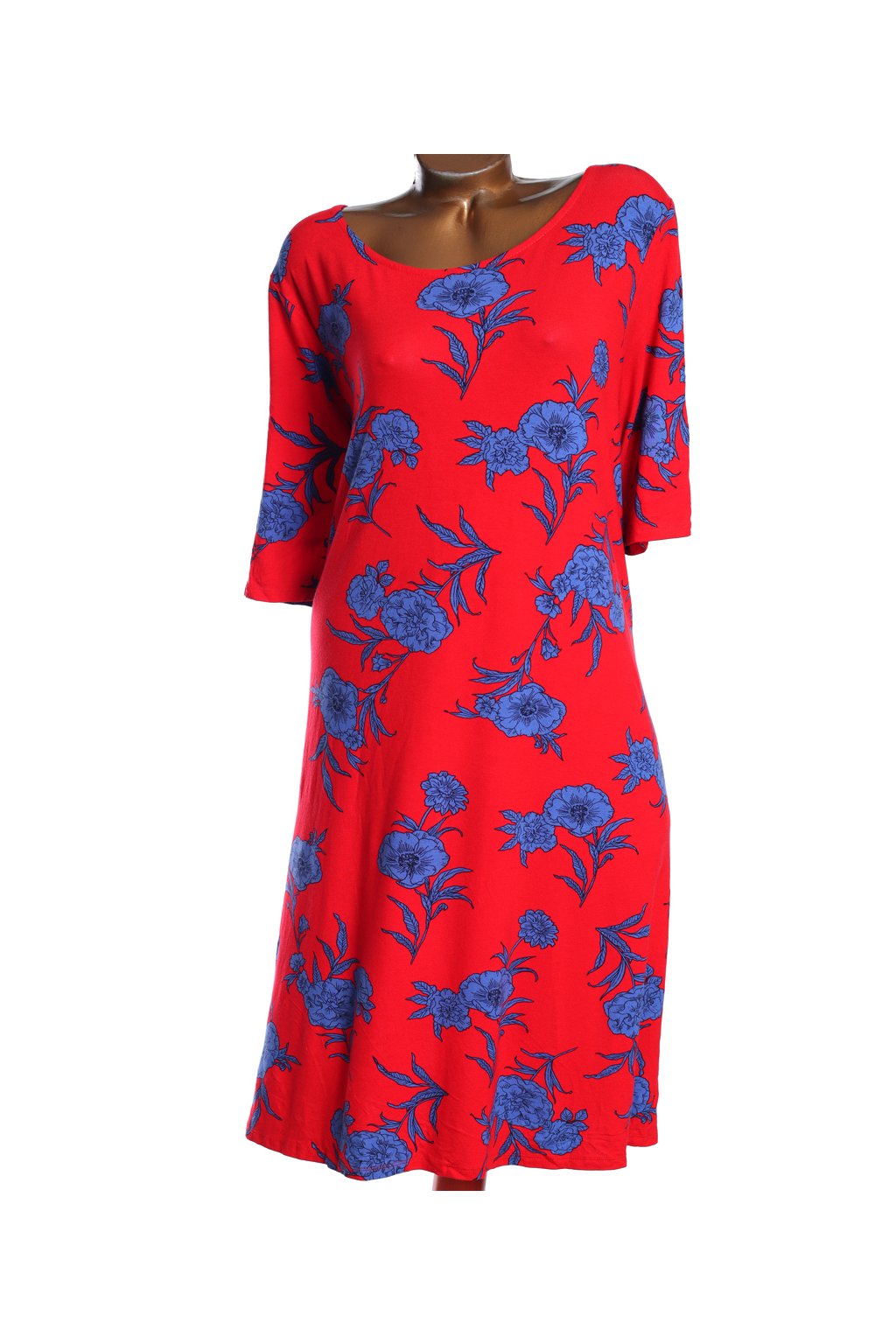 Dámské červené šaty s modrými vzory / BONMARCHÉ / (52) / UK 24 / ANGLIE