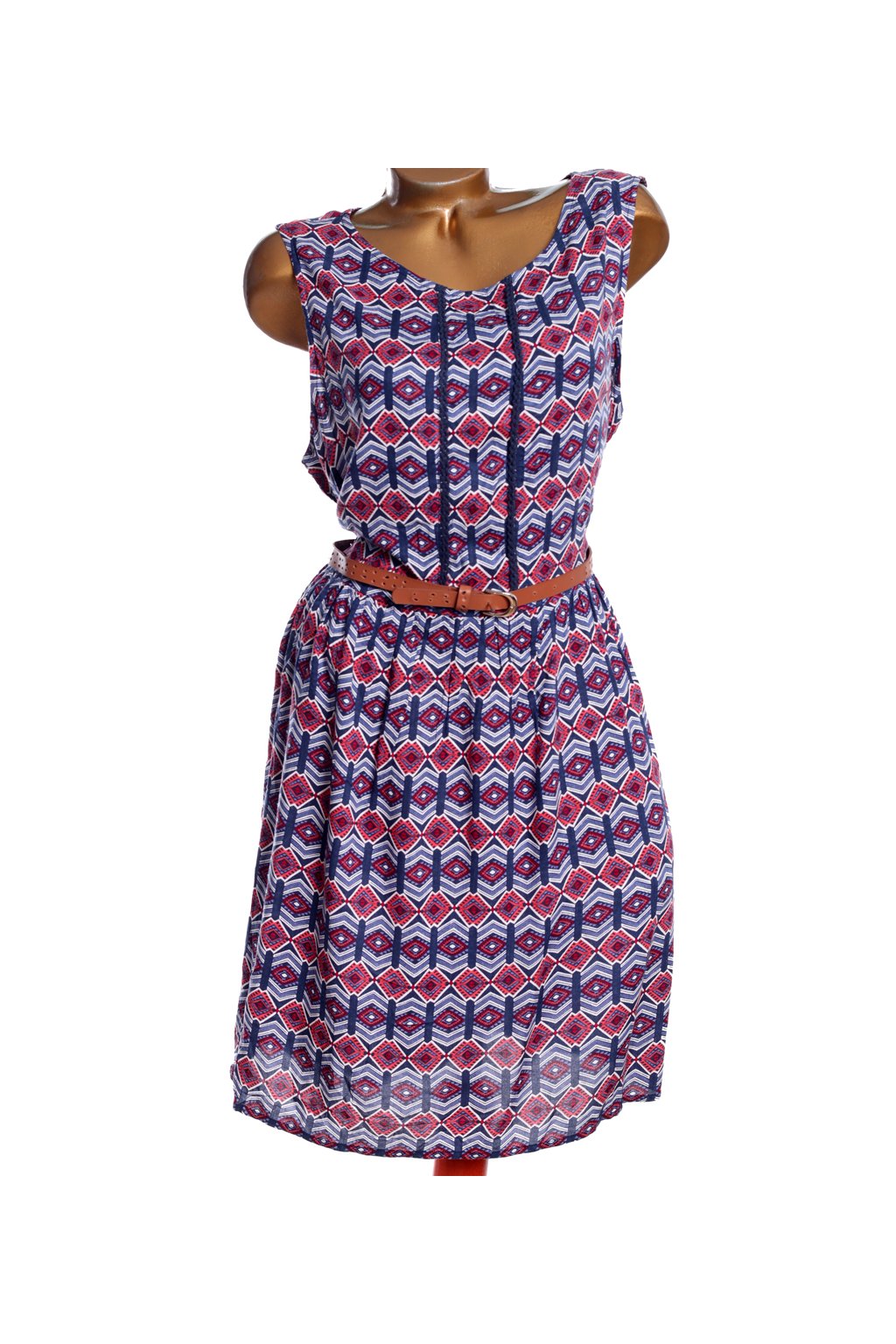 Dámské červeno-modro-bílé geometricky vzorované šaty s páskem / GEORGE / XXXL (50) / UK 22 / ANGLIE