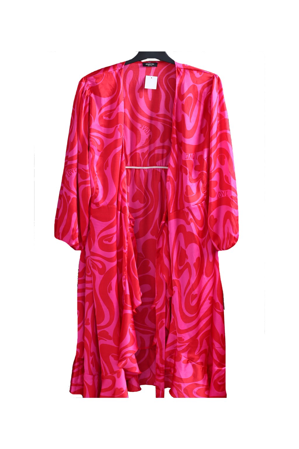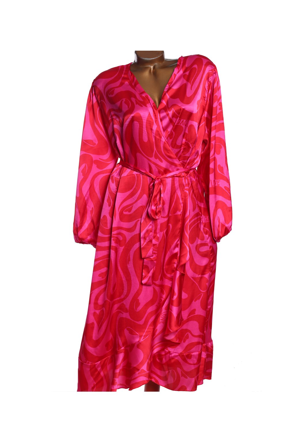 Dámské červeno-růžové vzorované saténové šaty /SIMPLY BE / XXXXL (52) / UK 24 ANGLIE