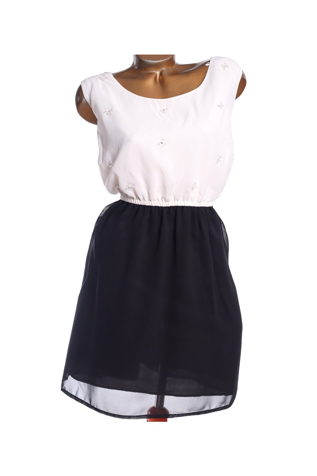 Dámské elegantní bílo-černé šaty s kamínky / LIMITED / XXXXL (52) / UK 24 / ANGLIE