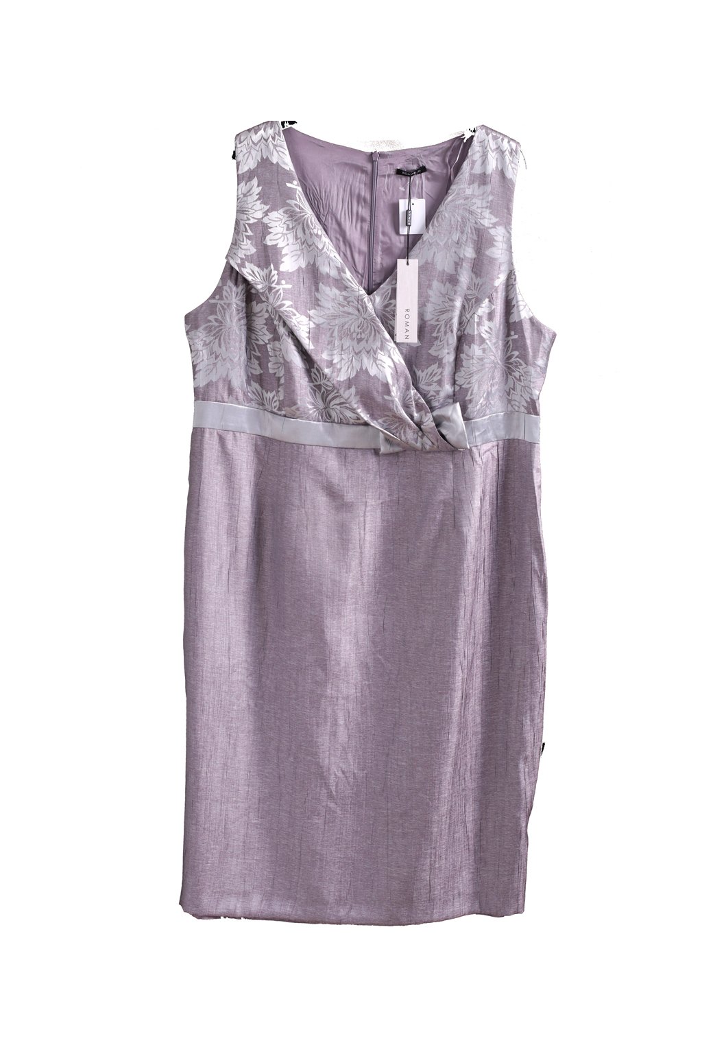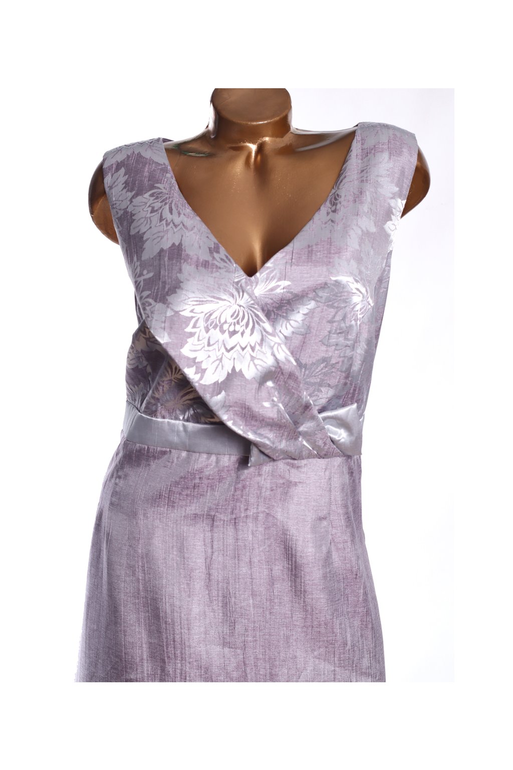 Dámské kvalitní společenské fialkové šaty s šedými květy / ROMAN / XXXL (50) / UK 22 / ANGLIE