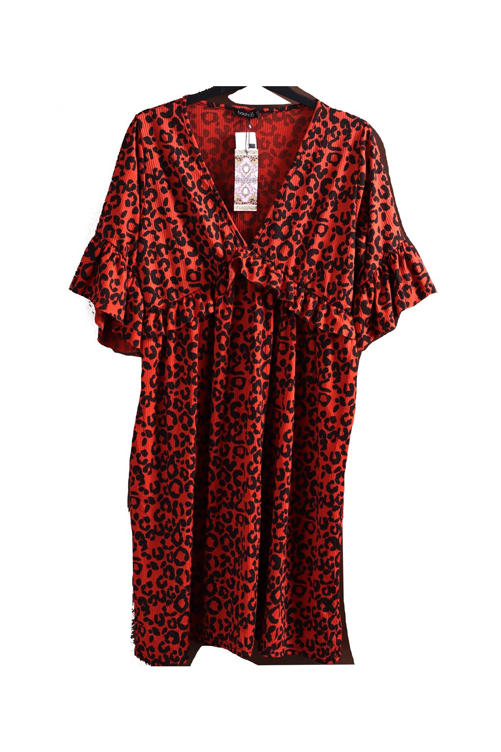Dámské hnědé/cihlové šaty s černým leopardím vzorem / BOOHOO / XXXL (46) / UK 18 / ANGLIE