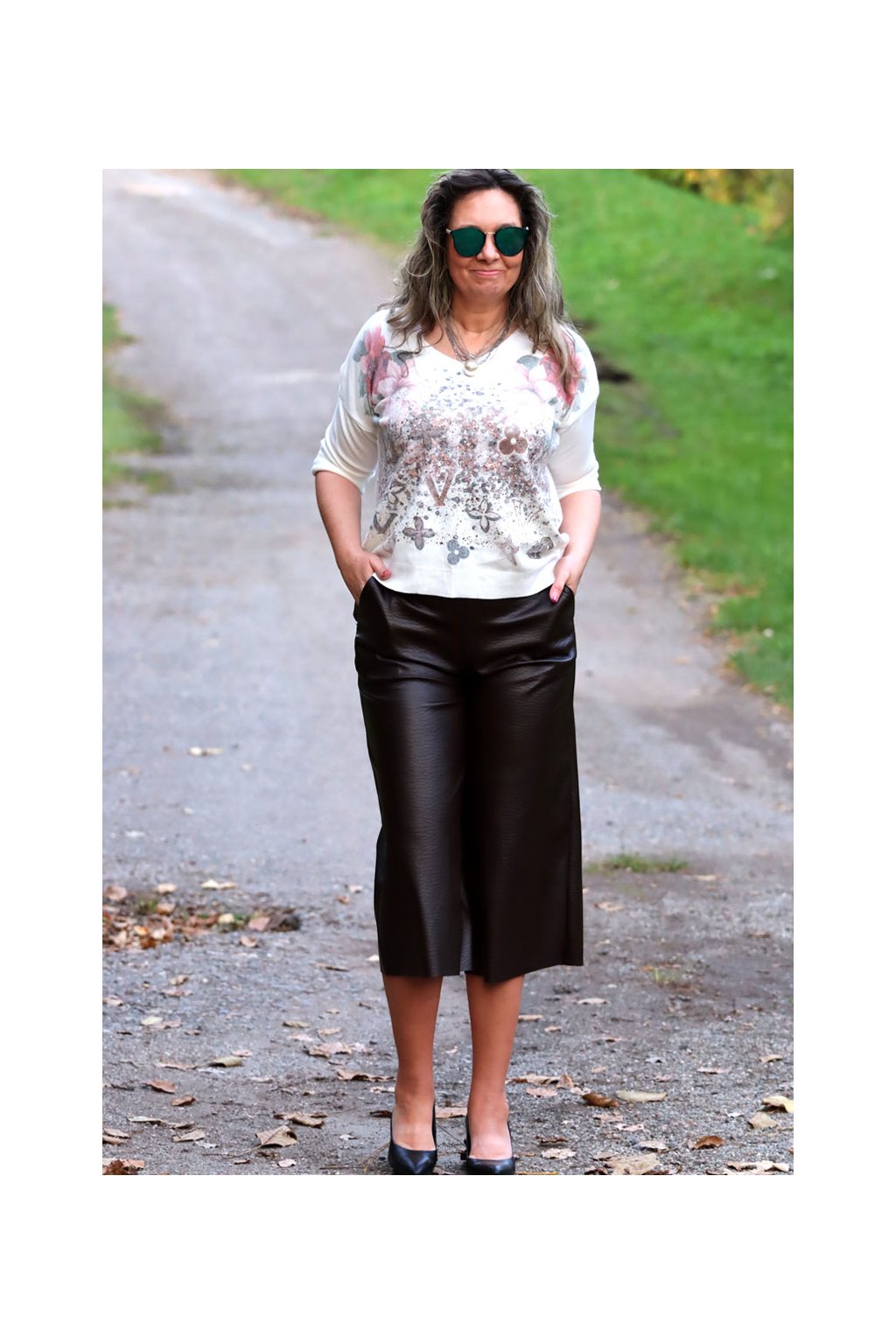 Dámské hnědé koženkové kalhoty / S/M (36/38) pas do 90 cm / MODA ITALY