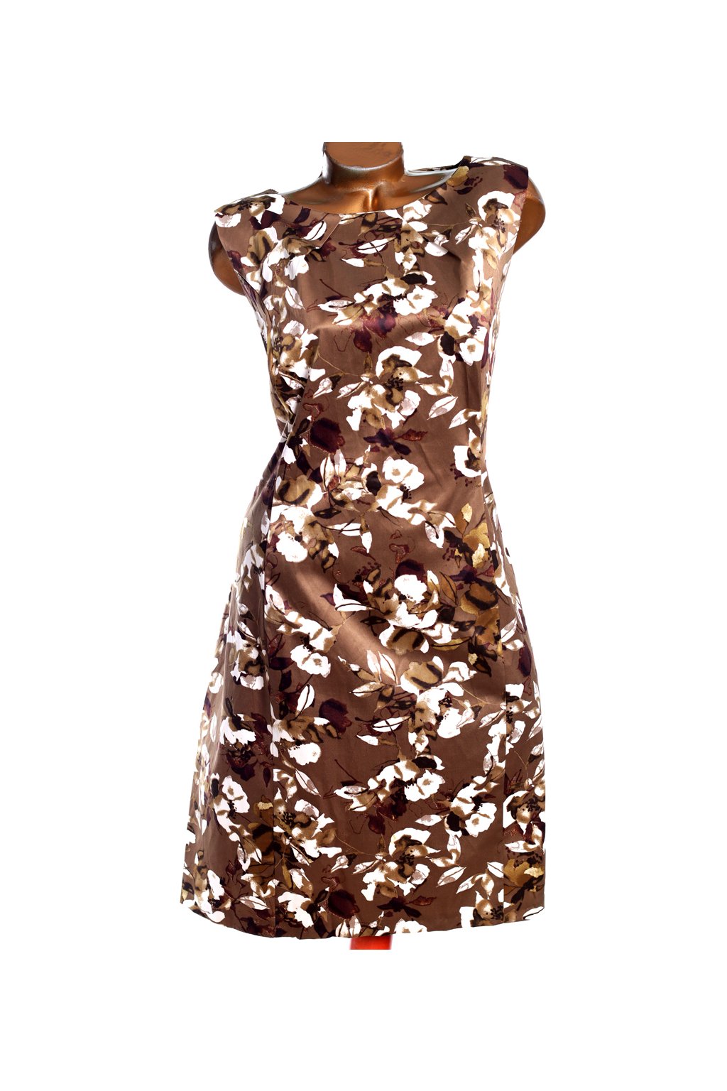 Dámské hnědé saténové šaty s květy / F§F / XXXL (48/50) / UK 22 / ANGLIE
