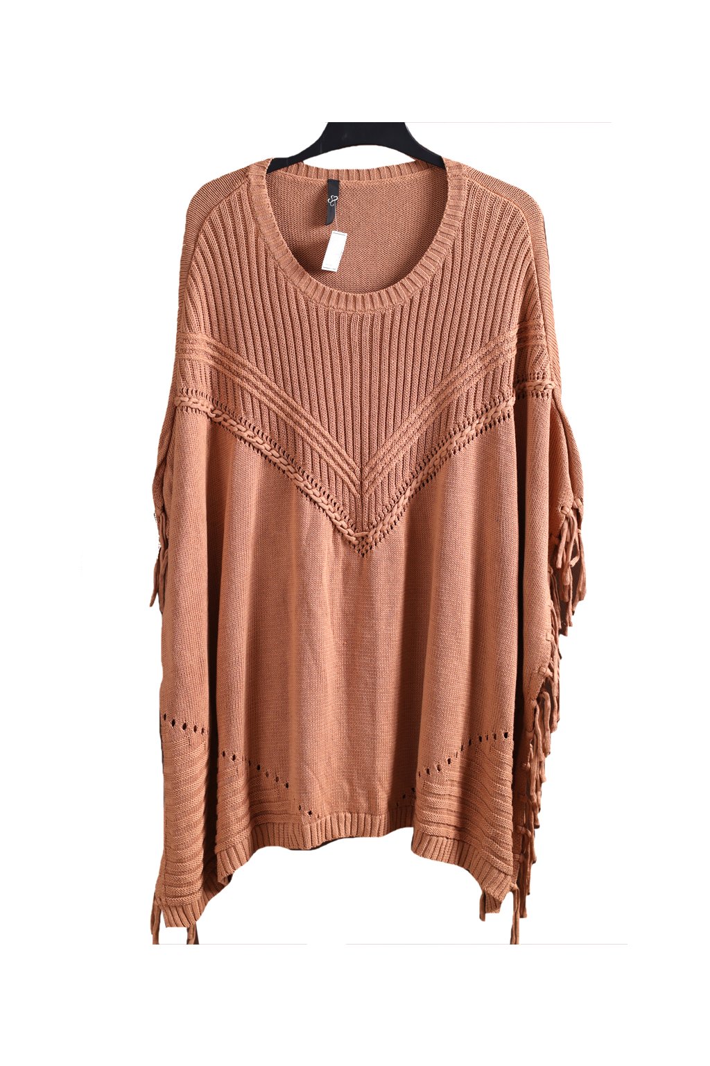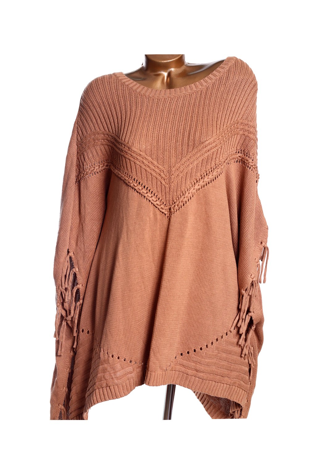 Dámské hnědé svetrové pončo s třásněmi / XXXXL (54-56) / UK 26/28 / ANGLIE