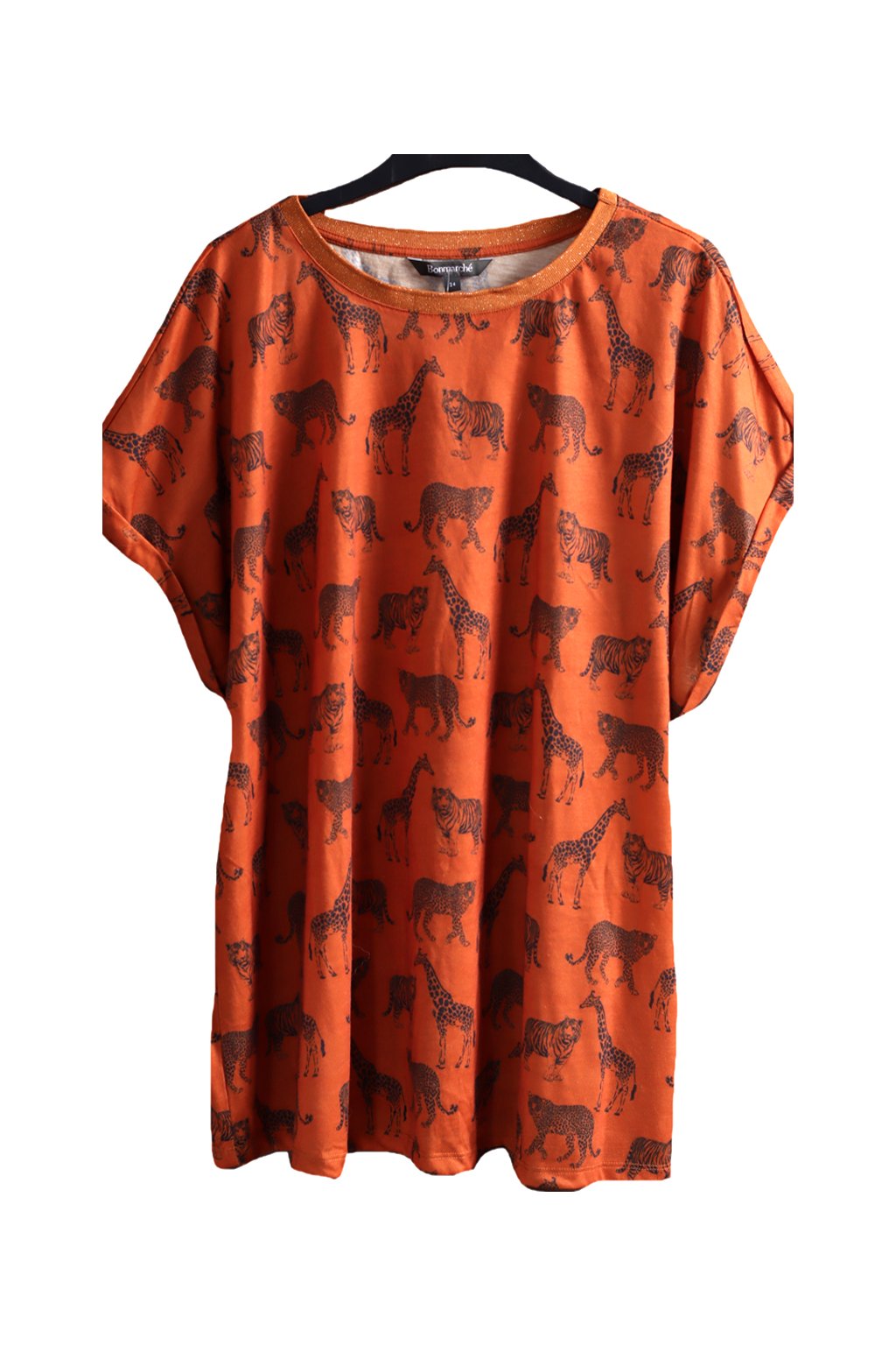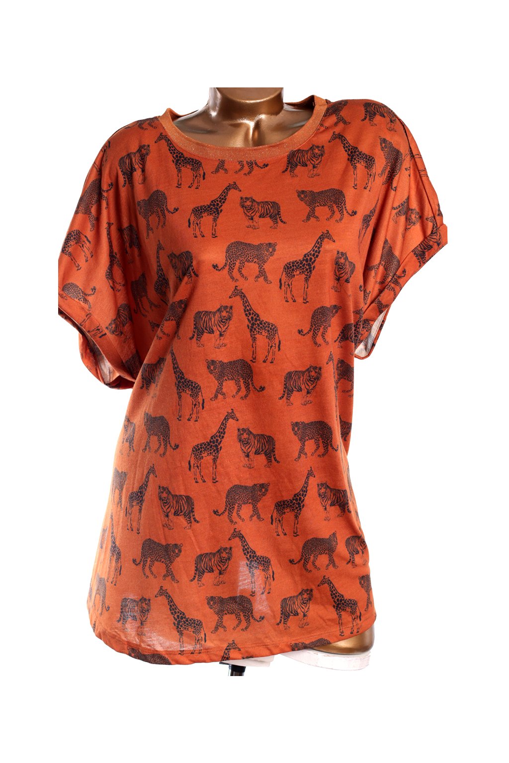 Dámské hnědé triko se safari zvířaty / BONMARCHÉ / XXXL (52) / UK 24 / ANGLIE