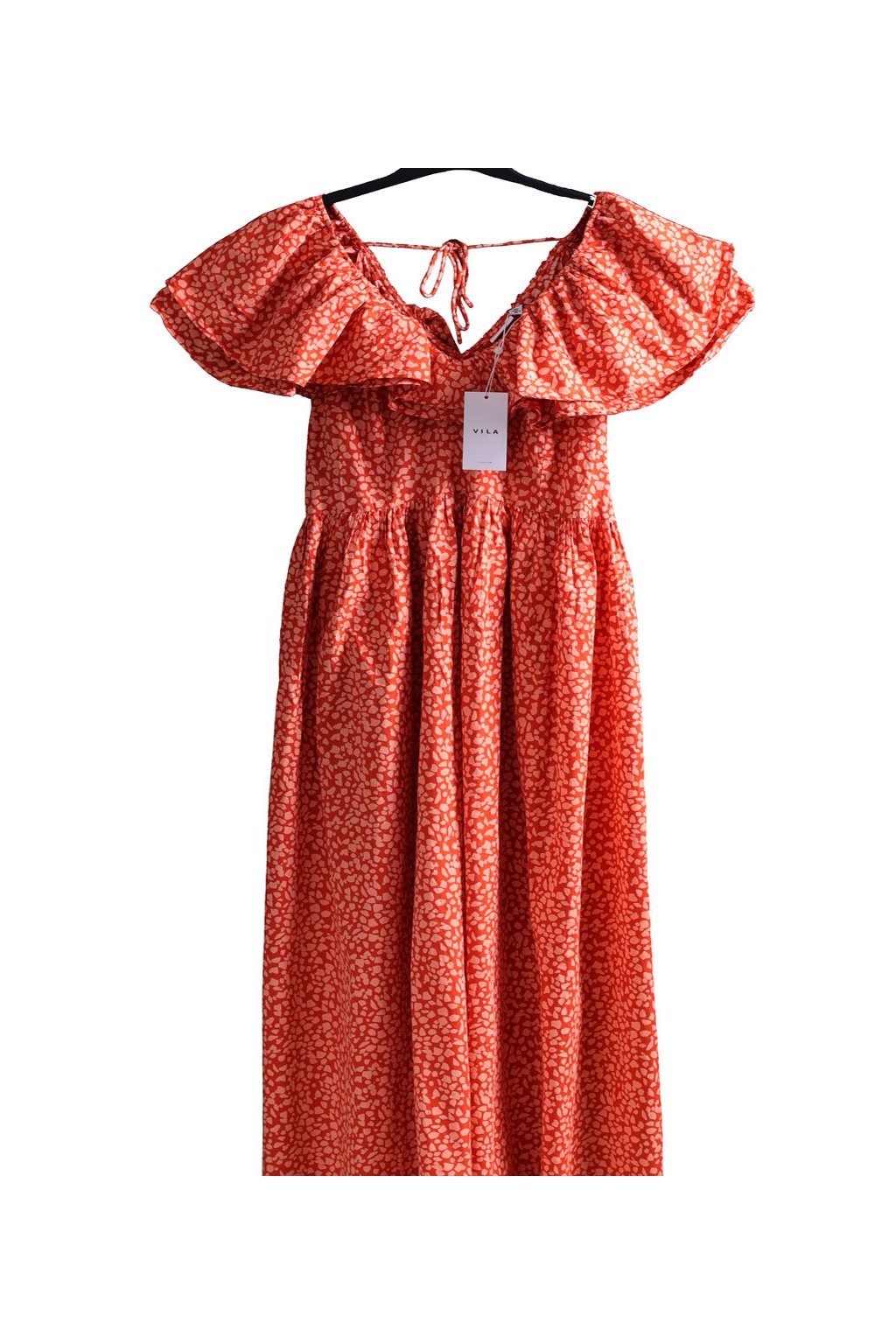 Dámské hnědo-lososové vzorované značkové šaty (původní cena 1800 Kč) / VILA / XXL (44) / UK 16 / ANGLIE