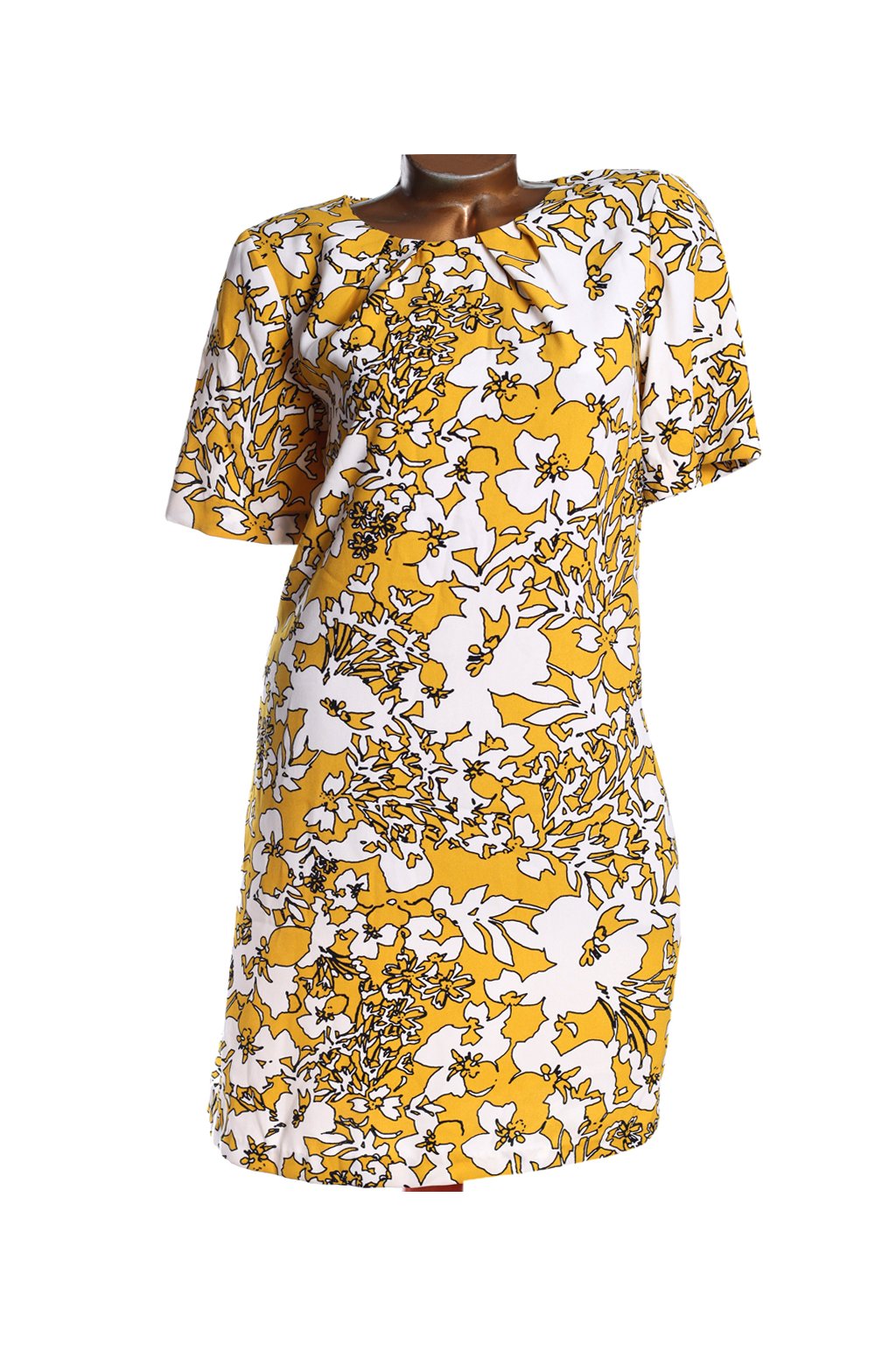 Dámské hořčicové šaty s bílo-černými vzory / MS / XXL (44) / UK 16 / ANGLIE