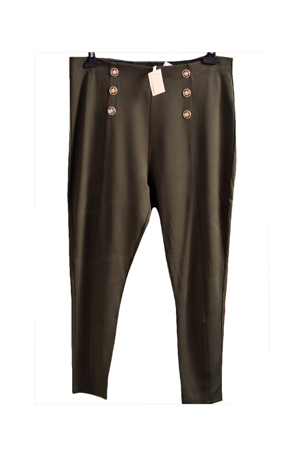 Dámské značkové khaki zelené kalhoty se zlatými sponami / CAPSULE / XXXL (50) / UK 22 / ANGLIE