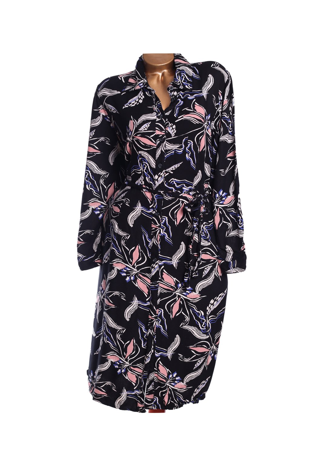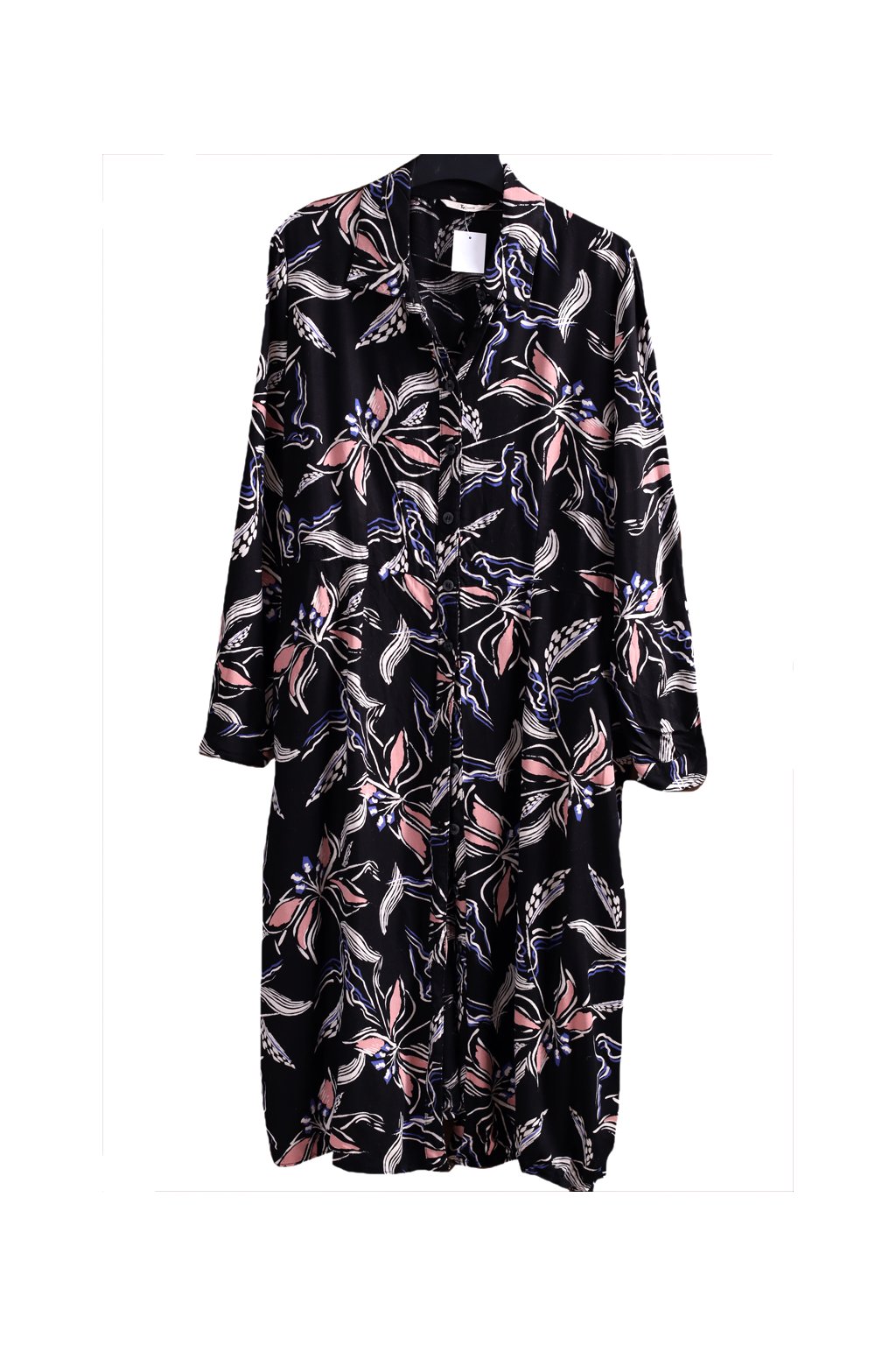 Dámské košilové černé šaty s bílo-modro-růžovými květy / TU / XXL (48) / UK 20 / ANGLIE
