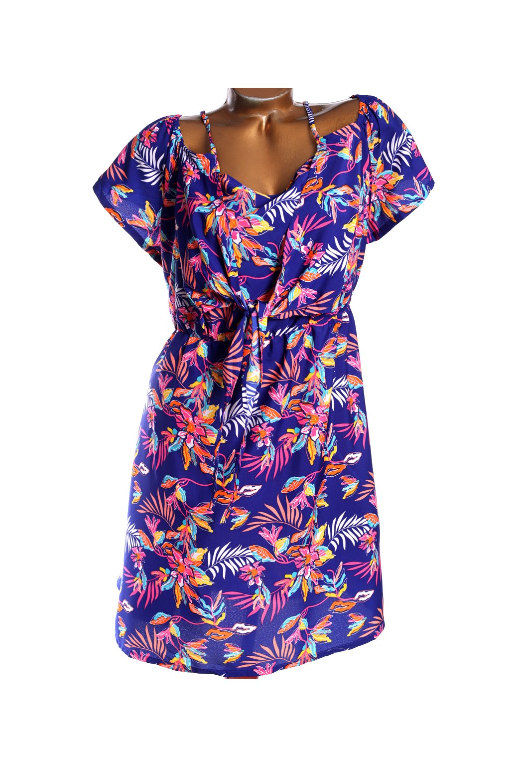 Dámské královsky modré šaty s barevnými květy / BE YOU / XXXXL (52/54) / UK 24/26 / ANGLIE